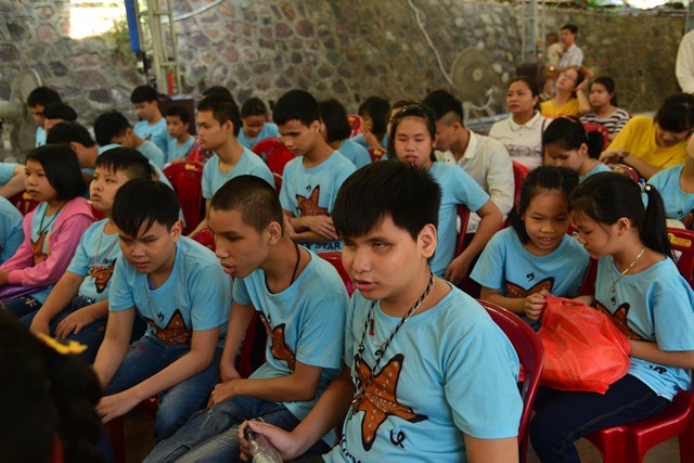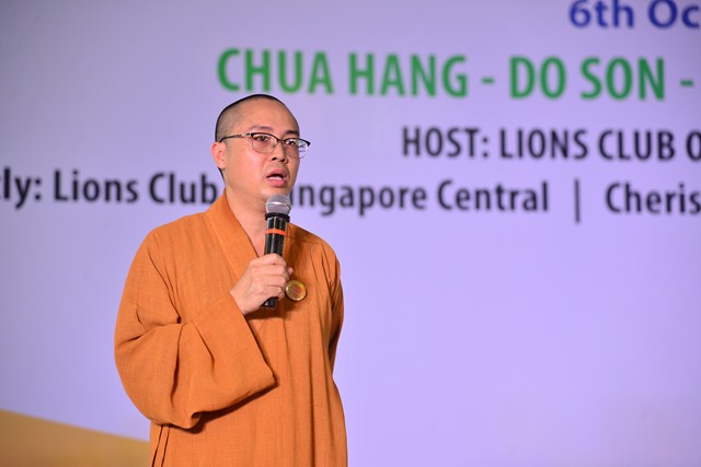 Tại buổi phát quà, ông: Phạm Quang Tuấn – Chủ tịch Hội khiếm thị tỉnh Hải Dương đã xúc động phát biểu tri ân Hòa thượng trụ trì, Đại đức Thích Giác Hiệu – Đương gia chùa Hang, cùng các thành viên của CLB Lions Club of Singapore Vista, các nhà hảo tâm, các mạnh thường quân đã quan tâm đến những mảnh đời bất hạnh, đặc biệt là đối với trẻ em khiếm thị của tỉnh Hải Dương và trẻ em khiếm thính đang sinh hoạt tại thành phố Hải Phòng. Ông mong rằng trong thời gian tới sẽ tiếp tục nhận được sự quan tâm, động viên của các nhà hảo tâm, các mạnh thường quân. Nhân đây, ông cũng kêu gọi các nhà hảo tâm, các mạnh thường quân, các Phật tử trong và ngoài nước phát tâm ủng hộ cho Hội khiếm thị tỉnh Hải Dương 10 bộ máy vi tính để các em khiếm thị đang sinh hoạt tại trung tâm có cơ sở vật chất học tập, phấn đấu hòa nhập với cộng đồng, trở thành những người có ích cho xã hội, là những bạn trẻ sống lạc quan, yêu đời, tuy tàn nhưng không phế.