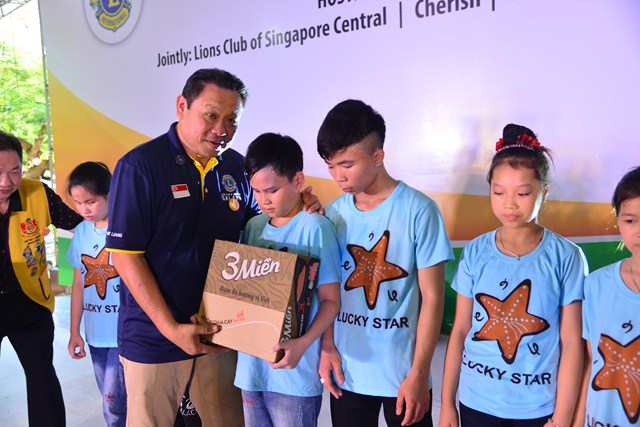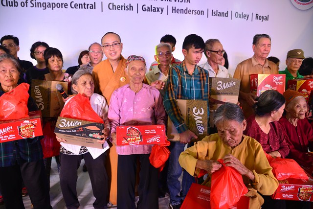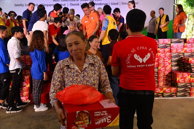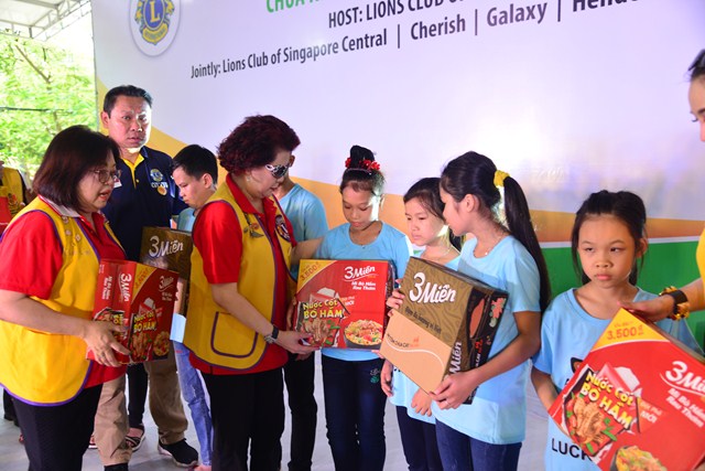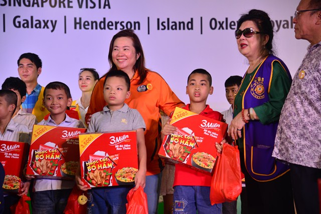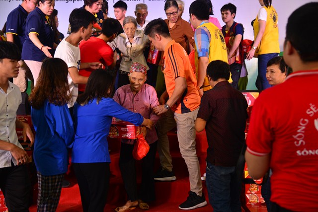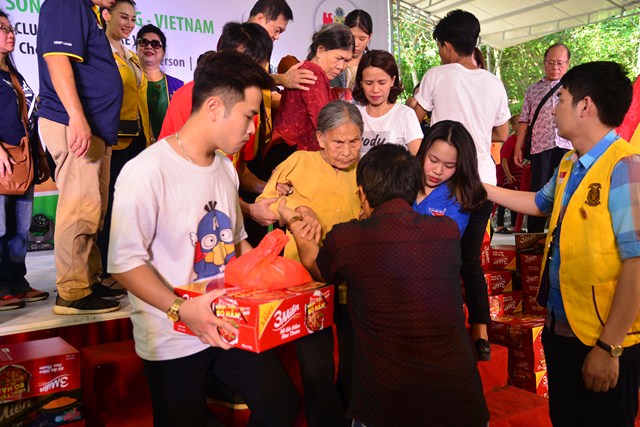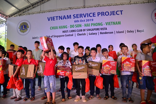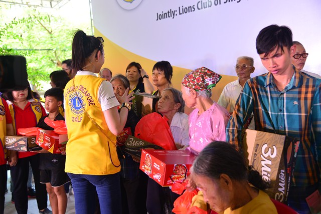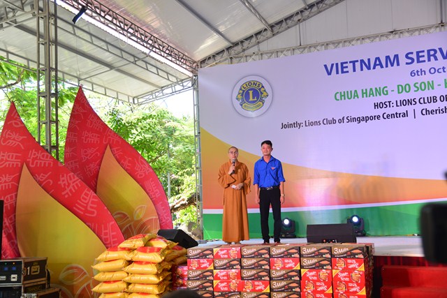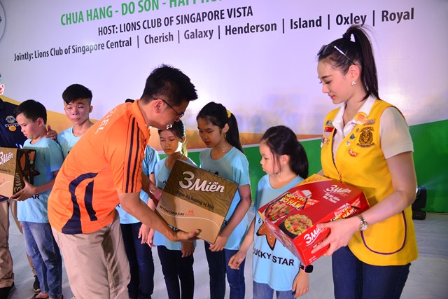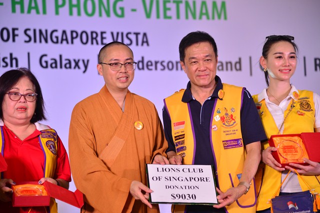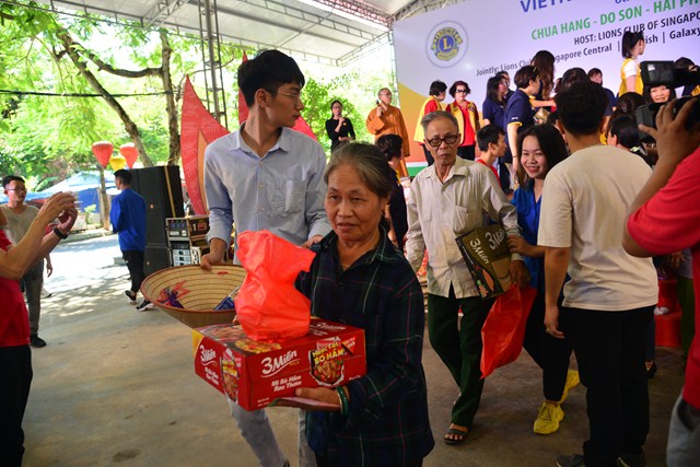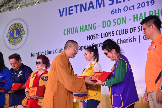 Nhân dịp này, Đại đức Thích Giác Hiệu – Trưởng BTC chương trình đã cùng các nhà hảo tâm, các thành viên đại diện cho CLB Lions Club of Singapore Vista trao 250 phần quà vào buổi sáng và 250 phần quà vào buổi chiều cùng ngày cho các đối tượng khó khăn, gia đình chính sách, hội khiếm thị tỉnh Hải Dương, trường khiêm thính Hải Phòng với tổng giá trị hơn 200 triệu đồng, bao gồm 1 phong bì tiền mặt 200 ngàn đồng, cùng với 1 thùng mỳ ăn liền và một túi quà trị giá hơn 200 ngàn đồng.