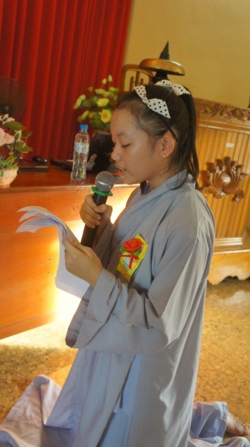 Thay mặt cho các em thanh thiếu niên và các Phật tử có mặt tại Đại lễ, Phật tử Kim Phúc đã đọc lời cảm niệm Vu lan nói lên công lao to lớn như trời biển của cha mẹ. Bài cảm niệm đã làm cho các Phật tử không thể cầm được nước mắt khi nghĩ đến công dưỡng dục của hai đấng sinh thành.