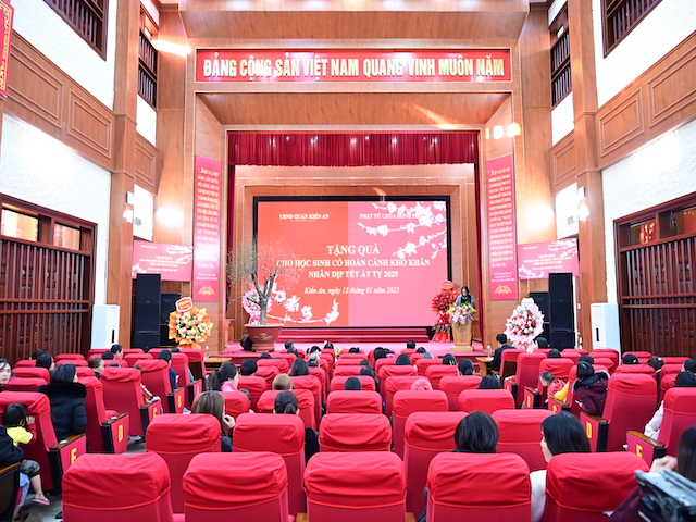 Chiều ngày 13/01/2025 ( nhằm ngày 14tháng Chạp năm Giáp Thìn) tại Hội trưởng Quận ủy quận Kiến An, thành phố Hải Phòng, đại diện chư Tăng, Phật tử chùa Hồng Phúc ( Phường Bắc Sơn, quận Kiến An, thành phố Hải Phòng) đã trao 150 phần quà cho các em học sinh nghèo vượt khó các cấp đang sinh sống và học tập tại quận Kiến An, thành phố Hải Phòng, với tổng số tiền là 150 triệu đồng.