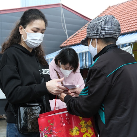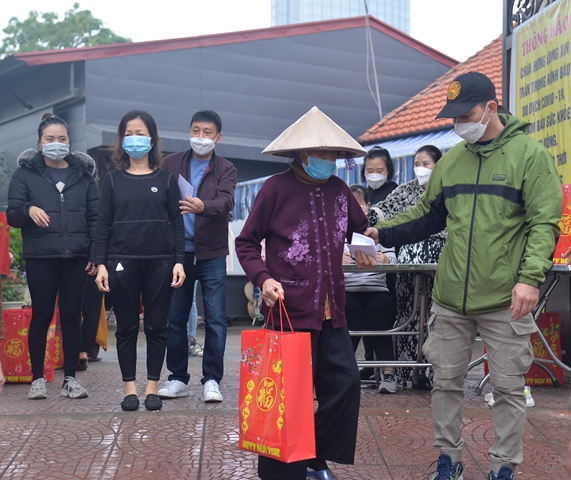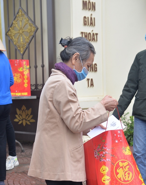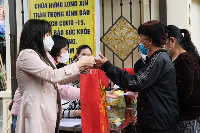 Đại diện thành viên CLB Hương Từ Tâm trao quà tết cho người nghèo trên địa bàn quận Hồng Bàng