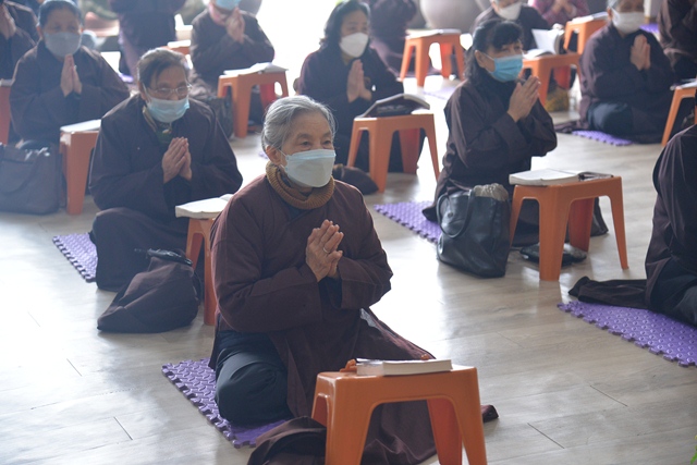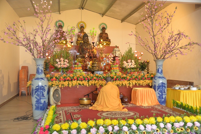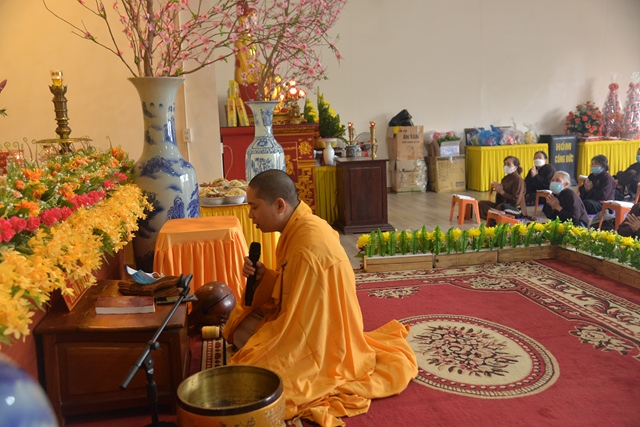 Chư tăng chùa Hưng Long tụng kinh cầu an tại chính điện
