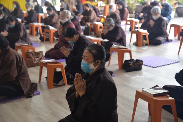 Phật tử tụng kinh cầu an tại chính điện chùa Hưng Long
