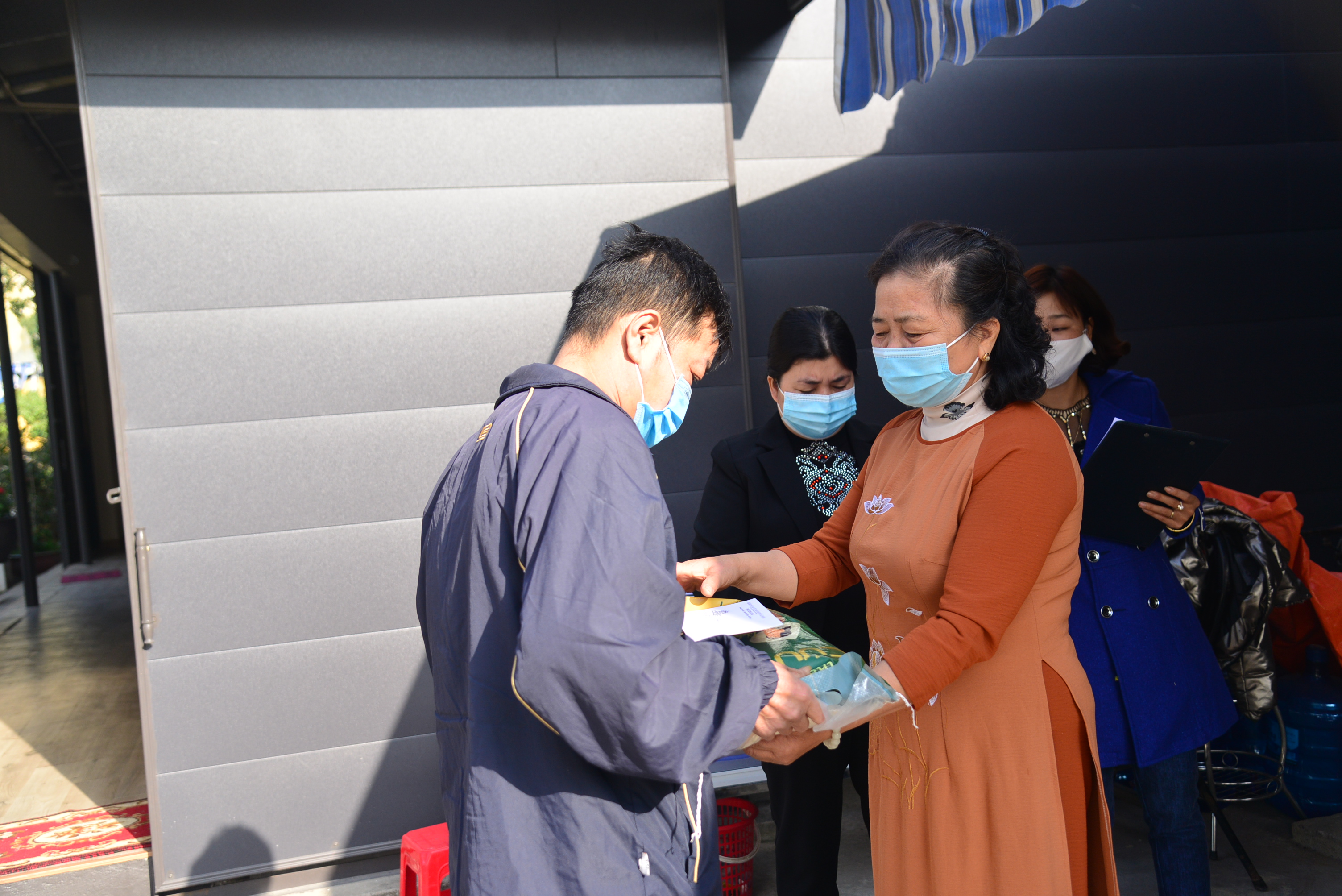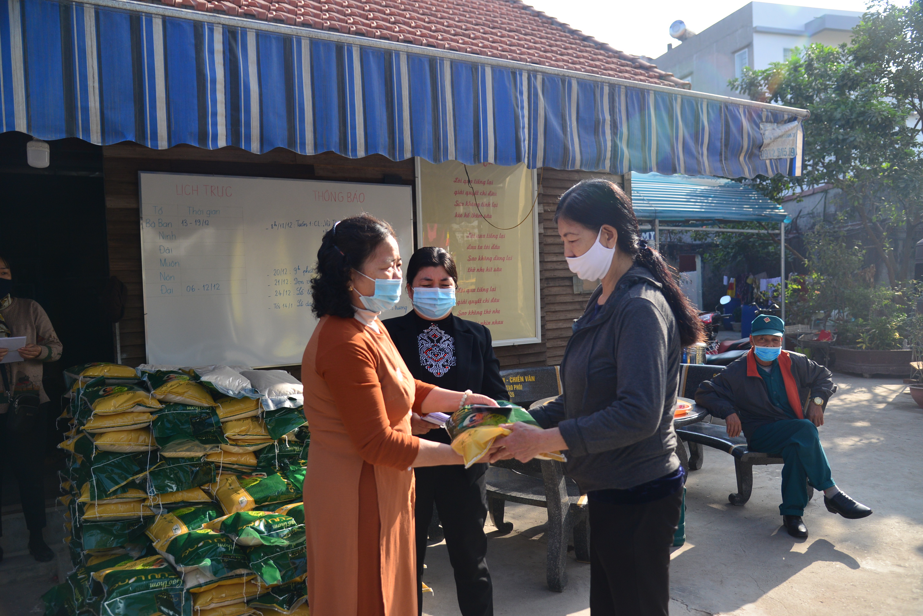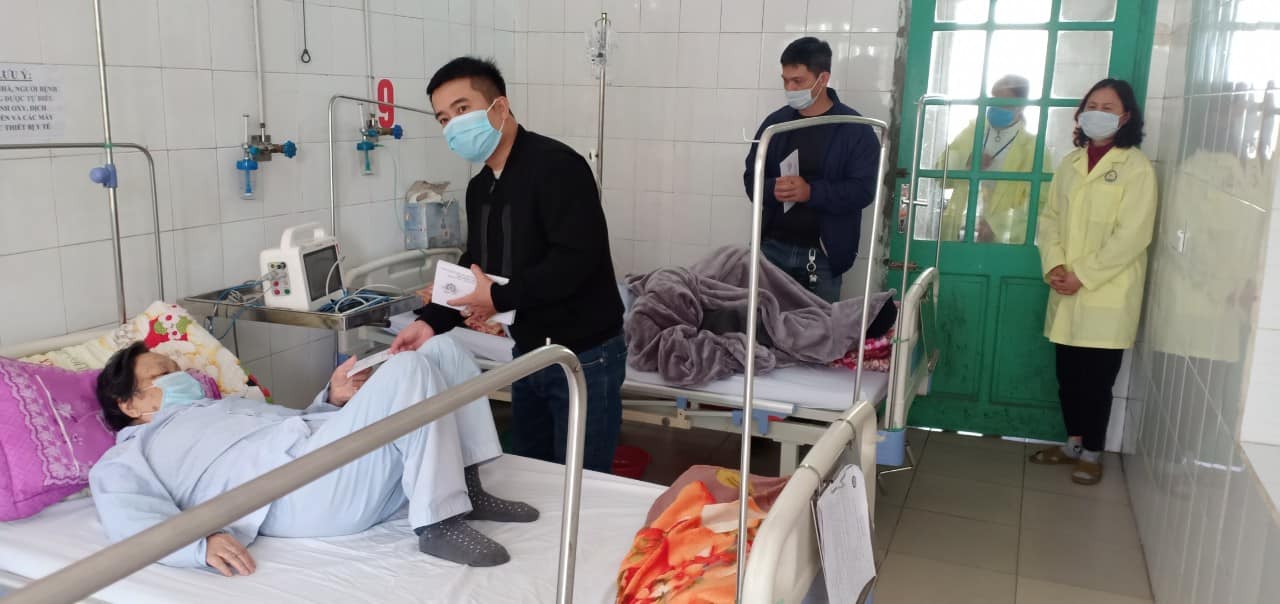 Đại diện Phật tử chùa Hưng Long trao quà tết cho bệnh nhân nghèo đang điều trị tại bệnh viên Lao & Phổi Hải Phòng