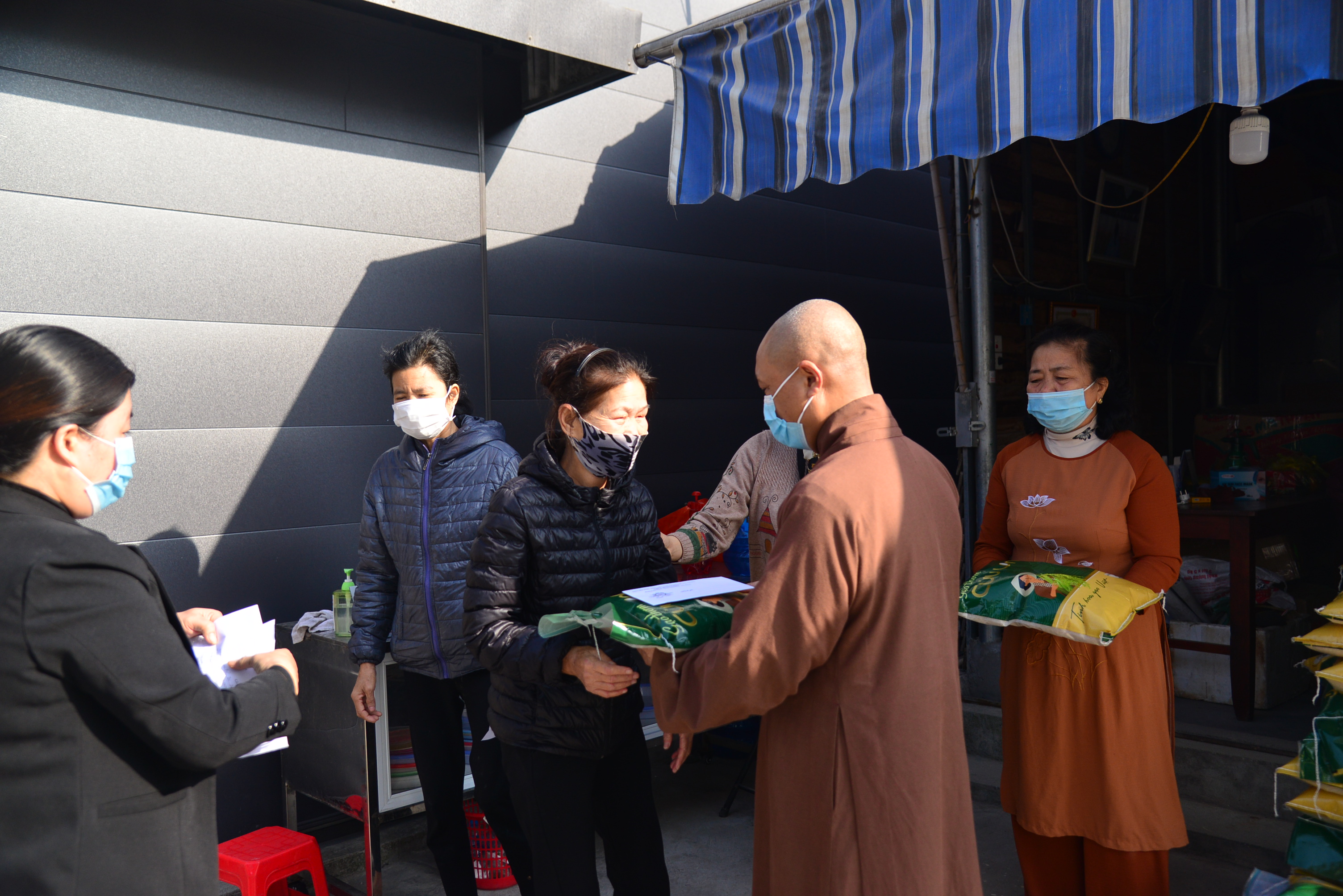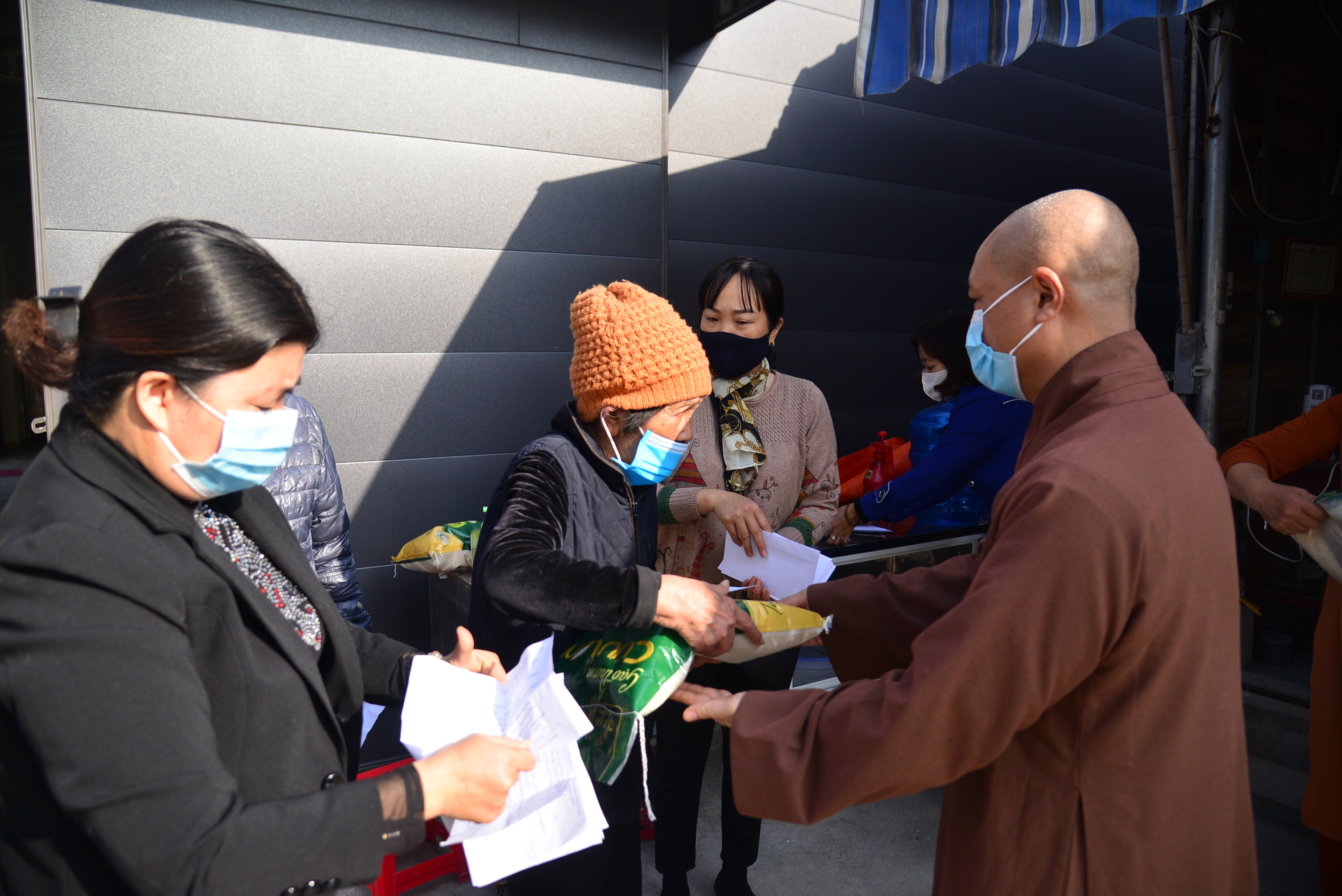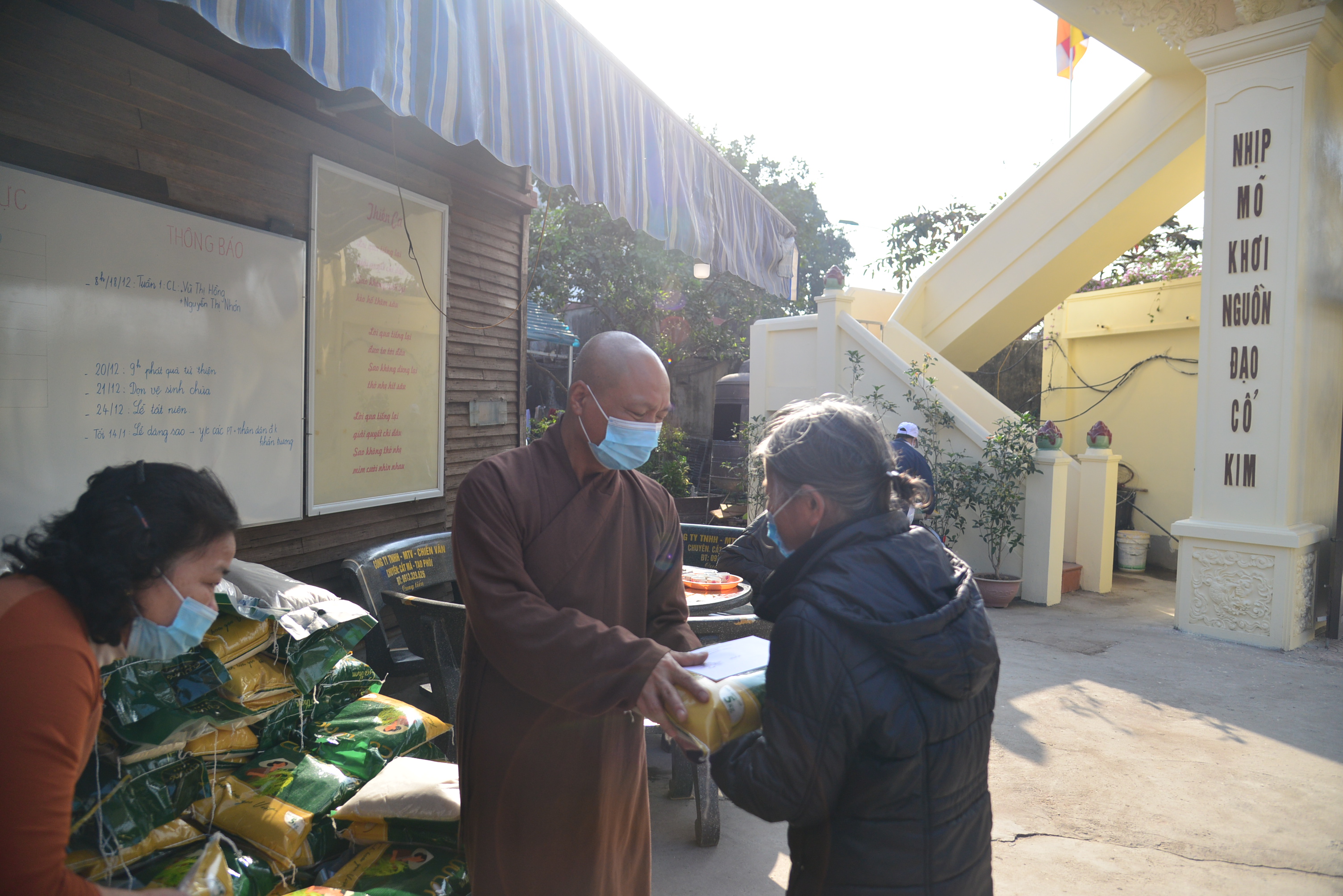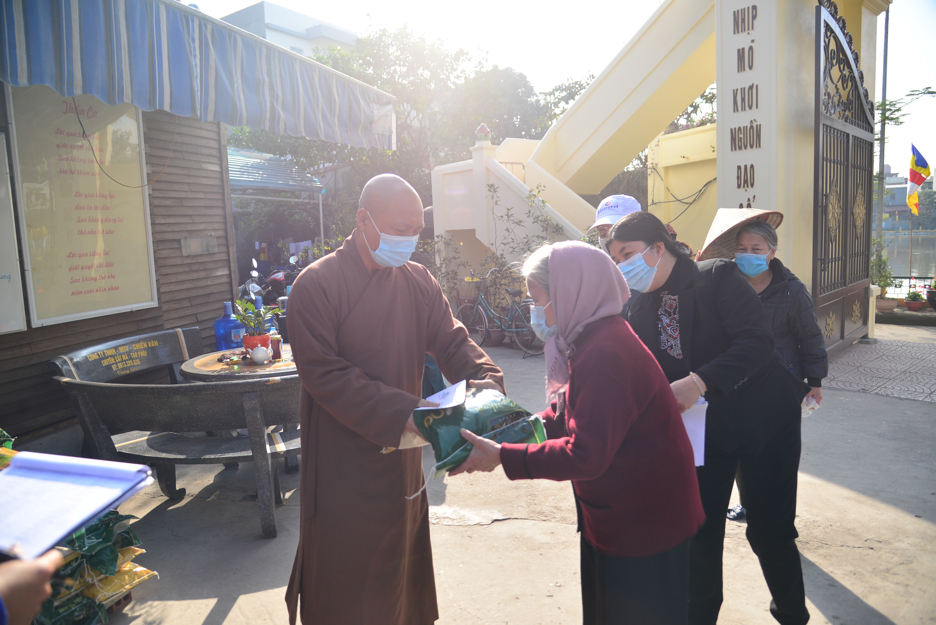 TT. Thích Tục Khang tặng quà tết cho người nghèo phường Trại Chuối tại chùa Hưng Long