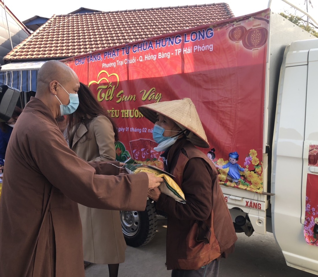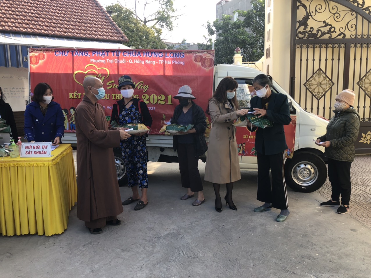 Kể từ khi Thượng toạ Thích Tục Khang – Phó trưởng Ban trị sự GHPGVN thành phố Hải Phòng về trụ trì chùa Hưng Long, phường Trại Chuối quận Hồng Bàng, thành phố Hải Phòng, cứ vào mỗi dịp tết nguyên đán cổ truyền, thượng toạ lại cùng Phật tử, nhân dân địa phương, các nhà hảo tâm, các mạnh thường quân trong và ngoài nước tổ chức chương trình tặng quà tết cho các gia đình chính sách, các gia đình có hoàn cảnh khó khăn trên địa bàn quận Hồng Bàng. Năm nay theo kế hoạch nhà chùa sẽ gói 6.000 chiếc bánh chưng chay tặng bà cho con nghèo địa phương và bệnh nhân có hoàn cảnh khó khăn đang điều trị tại một số bệnh viện trong thành phố để bà con ăn tết, nhưng do đại dịch covid-19 những ngày gần đây lại bùng phát trở lại nên Ban tổ chức chương trình quyết định dừng gói bánh chưng tặng bà con nhằm thực hiện việc giãn cách xã hội theo chỉ đạo của Thủ tướng Chính phủ, các sở, ban ngành thành phố và các cấp Giáo Hội. Chính vì vậy, Ban tổ chức đã đi đến thống nhất phương án tặng quà tết riêng lẻ cho người nghèo, tặng quà tại gia đình, phát giấy mời theo giờ để bà con tới chùa và tới UBND phường nhận quà, không tập chung đông người tránh lây lan dịch bệnh.
