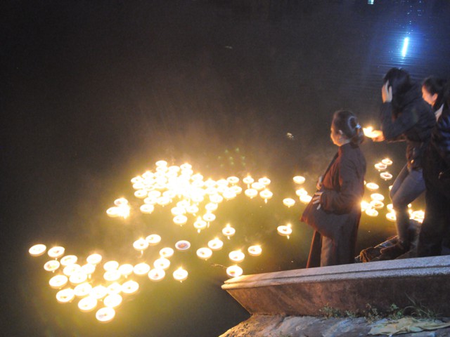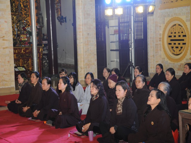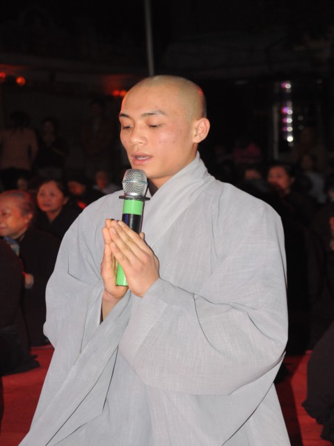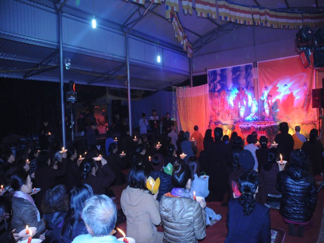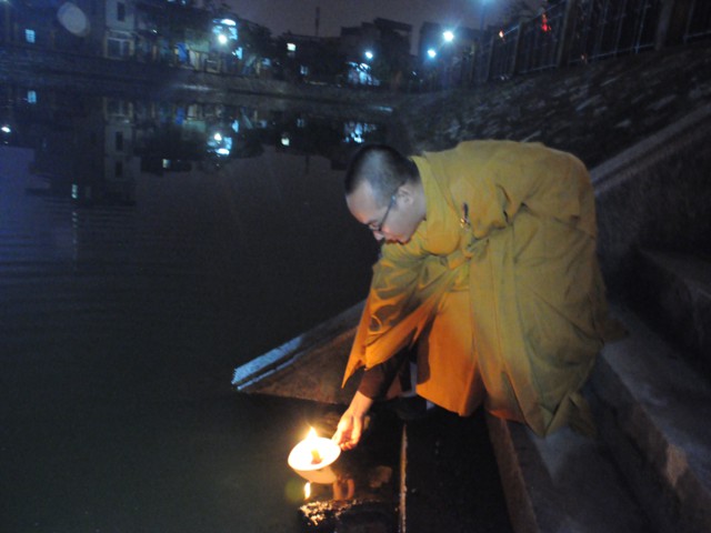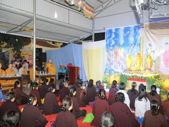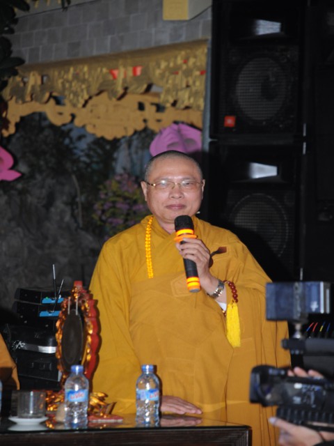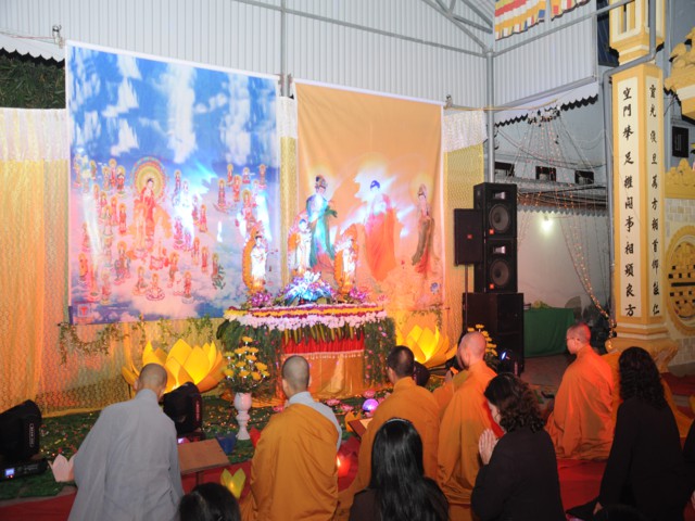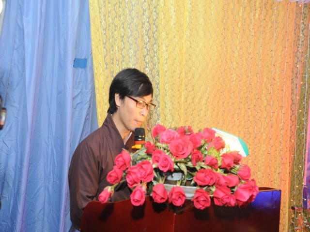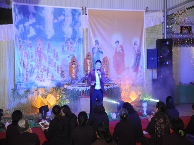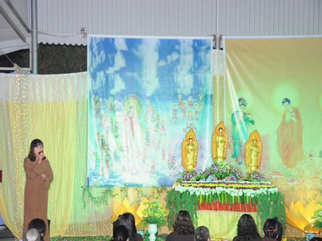 Đúng 19h30 phút đã chính thức diễn ra Đêm hoa đăng mừng khánh đản đức từ phụ A Di Đà. Sau nghi thức niệm Phật cầu gia bị, chào đạo kỳ, quốc kỳ, một phút nhập từ bi quán tưởng niệm Chư lịch đại Tổ Sư, các vị lãnh tụ qua các thời kỳ, các anh hùng liệt sỹ đã hy sinh cho độc lập tự do của Đất nước, Ni Sư Thích Tâm Kính – Phó Ban tổ chức đại lễ đã lên tuyên đọc diễn văn khai mạc và nói sơ qua về lịch sử đức Phật A Di Đà để các Phật tử nắm rõ hơn về cách tu học cũng như con đường tu học của mình để khi hết báo thân này được sinh qua cõi Tây Phương Cực Lạc của đức Phật A Di Đà.