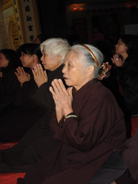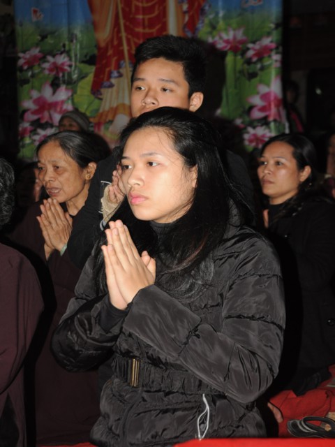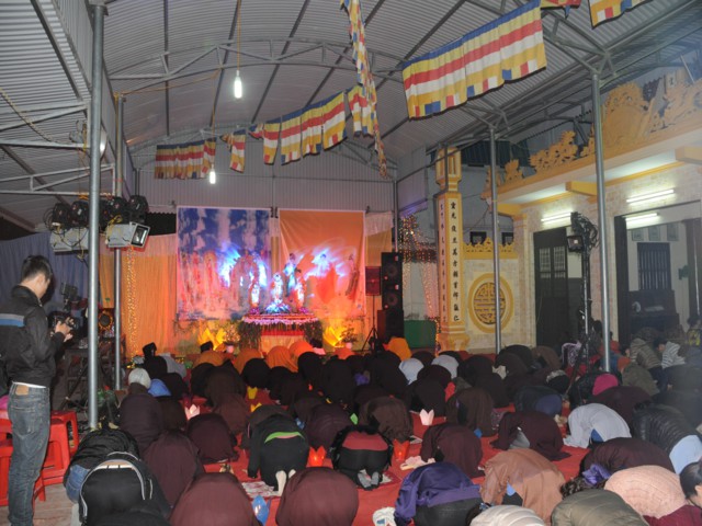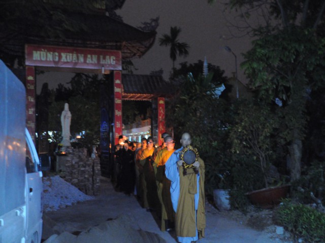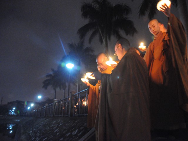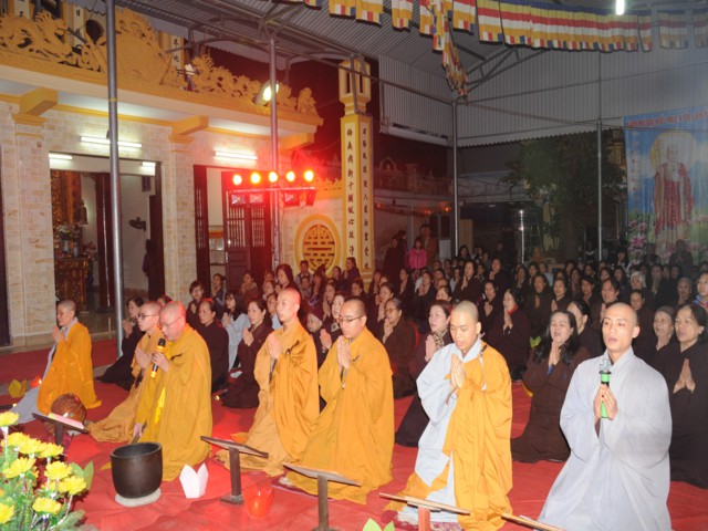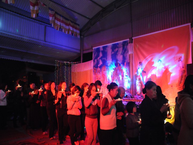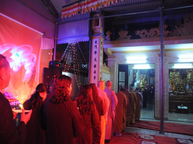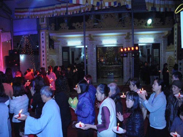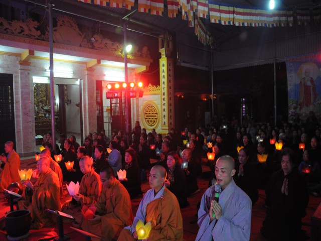 Cũng trong buổi lễ,Chưtôn đức Tăng Ni cùng quý Phật tử đã làm lễ dâng hương bạch Phật, thắp nến cầu nguyện thế giới hòa bình, chúng sinh an lạc. Đồng thời xưng tán 48 lời nguyện của đức từ phụ A Di Đà và đi kinh hành, nhiễu Phật, niệm sáu chữ hồng danh: “ Nam Mô A Di Đà Phật” tại chính điện chùa Linh Quang trong không khí trang nghiêm thành kính.