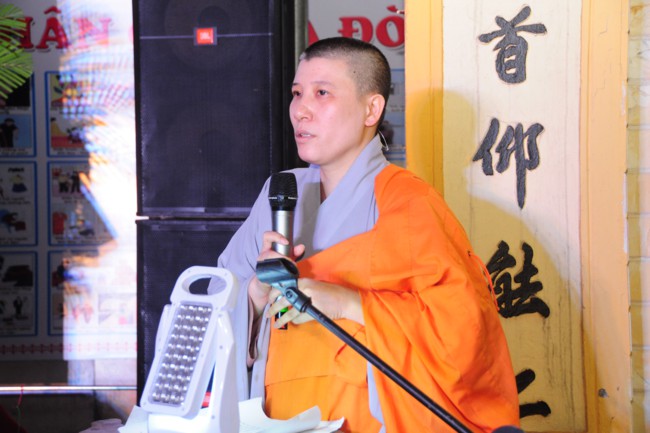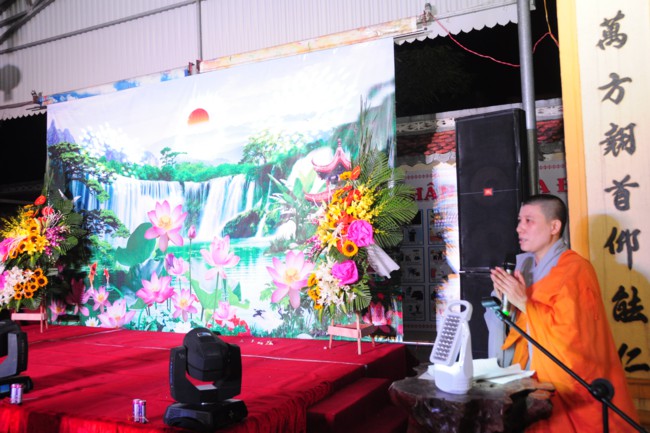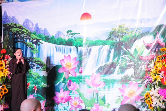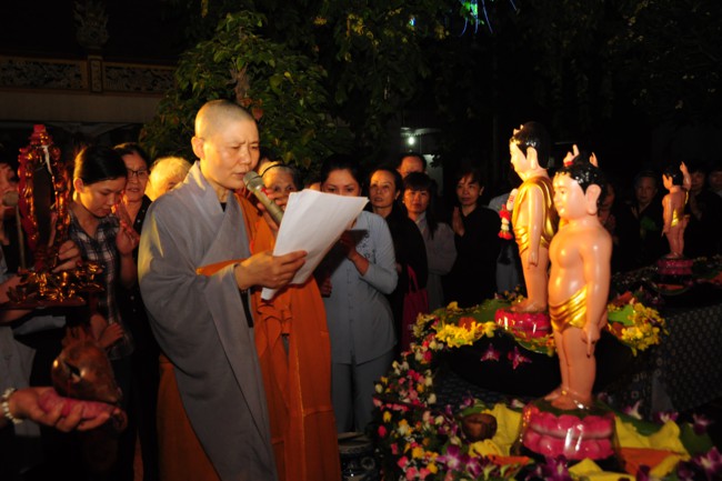 Thay mặt cho Ban tổ chức, Sư Cô Thích Diệu Thanh đã lên tuyên đọc Ý nghĩa ngày Đức Phật đản sinh và công đức tắm Phật. Theo đó, Đức Phật ra đời là một nhân duyên lớn, khai thị chúng sinh ngộ nhập Phật tri kiến. Kỷ niệm ngày Phật Đản Sinh là để mỗi chúng ta ôn lại hoài bão của chư Phật chính là sự tự nhắc nhở của mỗi người con Phật, trong ta có Phật và hãy phát huy Phật tính trong mỗi chúng ta để tìm tới con đường giác ngộ, giải thoát.