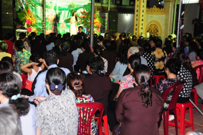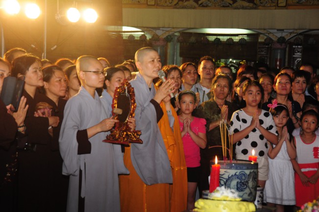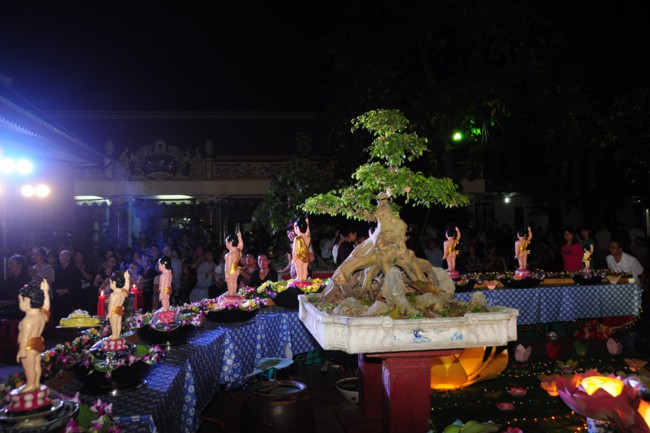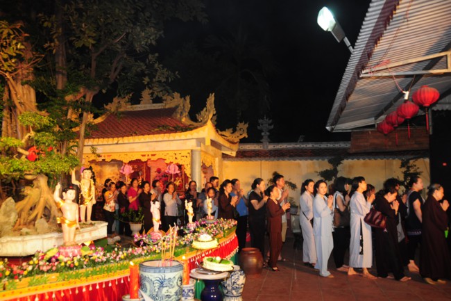 Trước khi kết thúc buổi lễ,Chưtôn đức Ni trong chốn trụ xứ và các Phật tử đã làm lễ thả hoa đăng cầu nguyện cho thế giới hòa bình, chúng sinh an lạc và nguyện cầu chư Phật gia hộ cho các Phật tử cùng gia đình có một mùa Phật đản thật an vui. hạnh phúc.