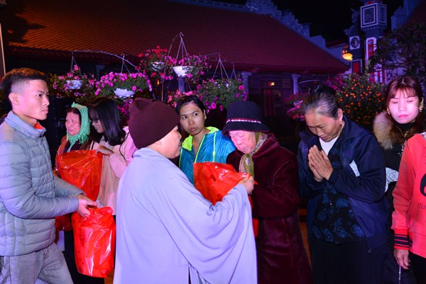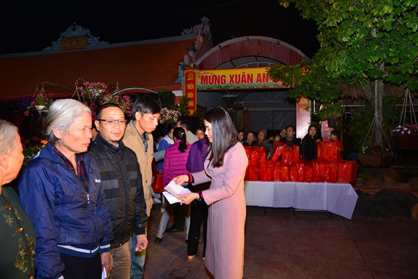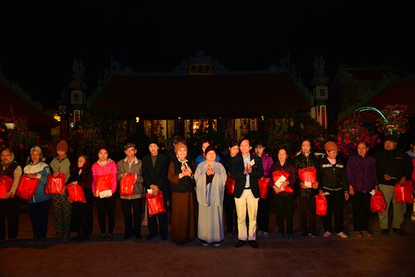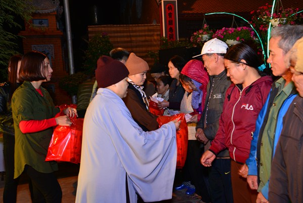 Nhân dịp này, chư Ni chùa Linh Ứng, đại diện các nhà hảo tâm, các mạnh thường quân, các cấp chính quyền đã trao 170 phần quà, mỗi phần quà bao gồm 500 nghìn đồng tiền mặt và 1 túi quà tết với tổng số tiền gần 100 triệu đồng cho các hộ gia đình có hoàn cảnh khó khăn đang sinh sống tại xã Hữu Bằng.
