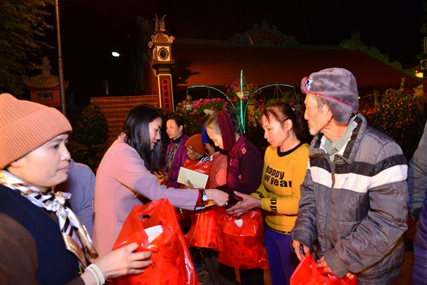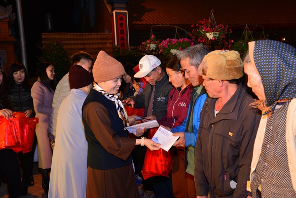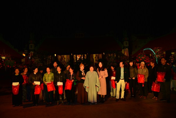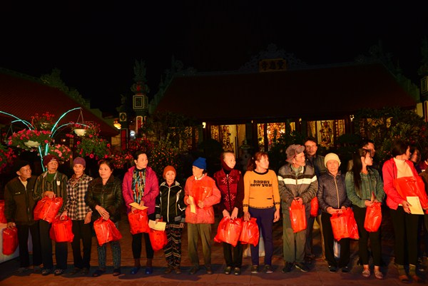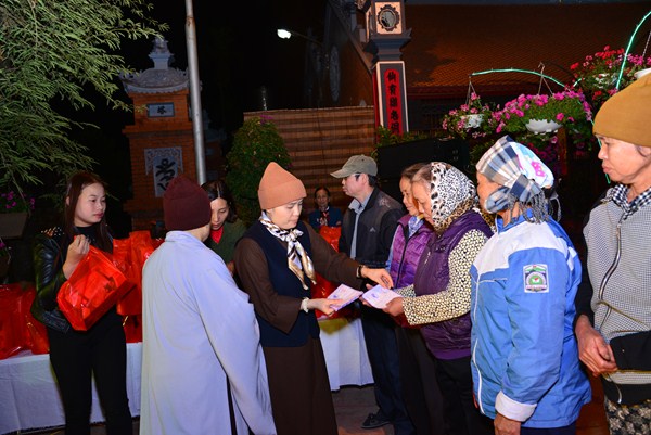 Nhân dịp này, chư Ni chùa Linh Ứng, đại diện các nhà hảo tâm, các mạnh thường quân, các cấp chính quyền đã trao 170 phần quà, mỗi phần quà bao gồm 500 nghìn đồng tiền mặt và 1 túi quà tết với tổng số tiền gần 100 triệu đồng cho các hộ gia đình có hoàn cảnh khó khăn đang sinh sống tại xã Hữu Bằng.
