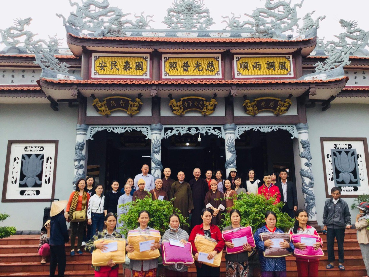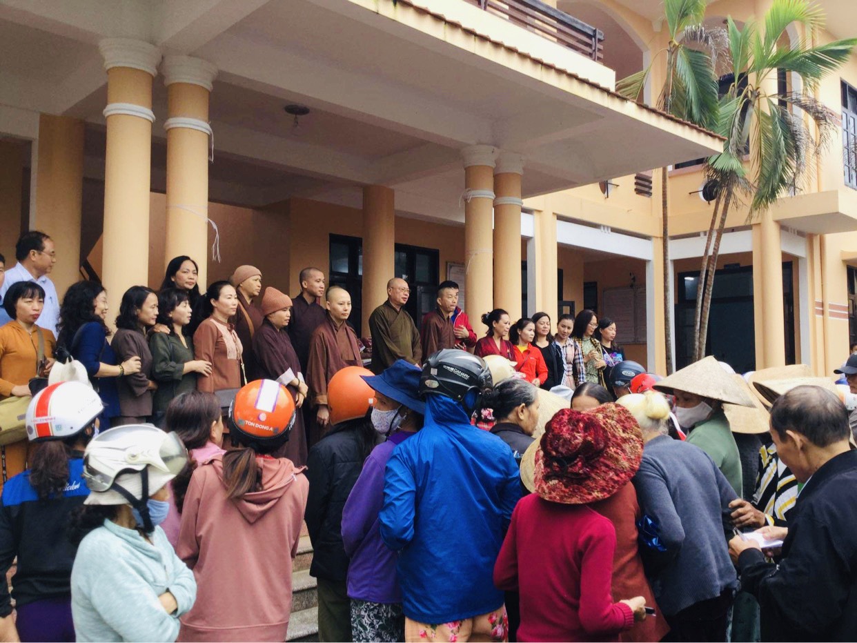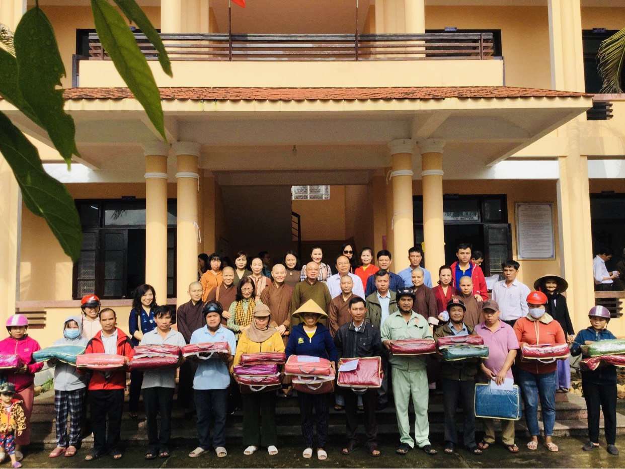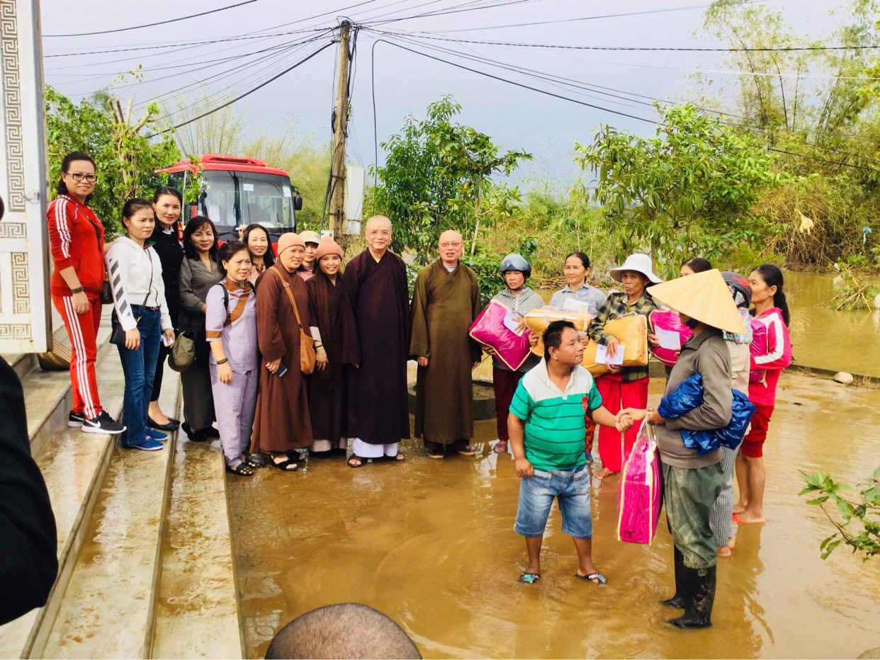 Ngày 16/11/2020 đoàn đã tới động viên, thăm hỏi và trao 250 phần quà cho 250 hộ gia đình có hoàn cảnh khó khăn bị thiệt hại do lũ lụt, sạt lở đất thuộc xã Quảng Vinh, huyện Quảng Điền, tỉnh Thừa Thiên Huế, mỗi phần quà bao gồm 1 phong bì tiền mặt 1 triệu đồng và 1 chiếc chăn ấm. Chiều cùng ngày, đoàn tới động viên, thăm hỏi, chia sẻ khó khăn, mất mát với thân nhân của một số gia đình chiến sỹ đã anh dũng hy sinh trong đợt cứu hộ, cứu nạn do sạt lở núi tại tiểu khu 67 và thuỷ điện Rào Trăng 3. Đồng thời, chư tôn đức đã làm lễ dâng hương, tưởng niệm và tụng kinh cầu nguyện hương linh các anh hùng, liệt sỹ sớm được siêu thoát.