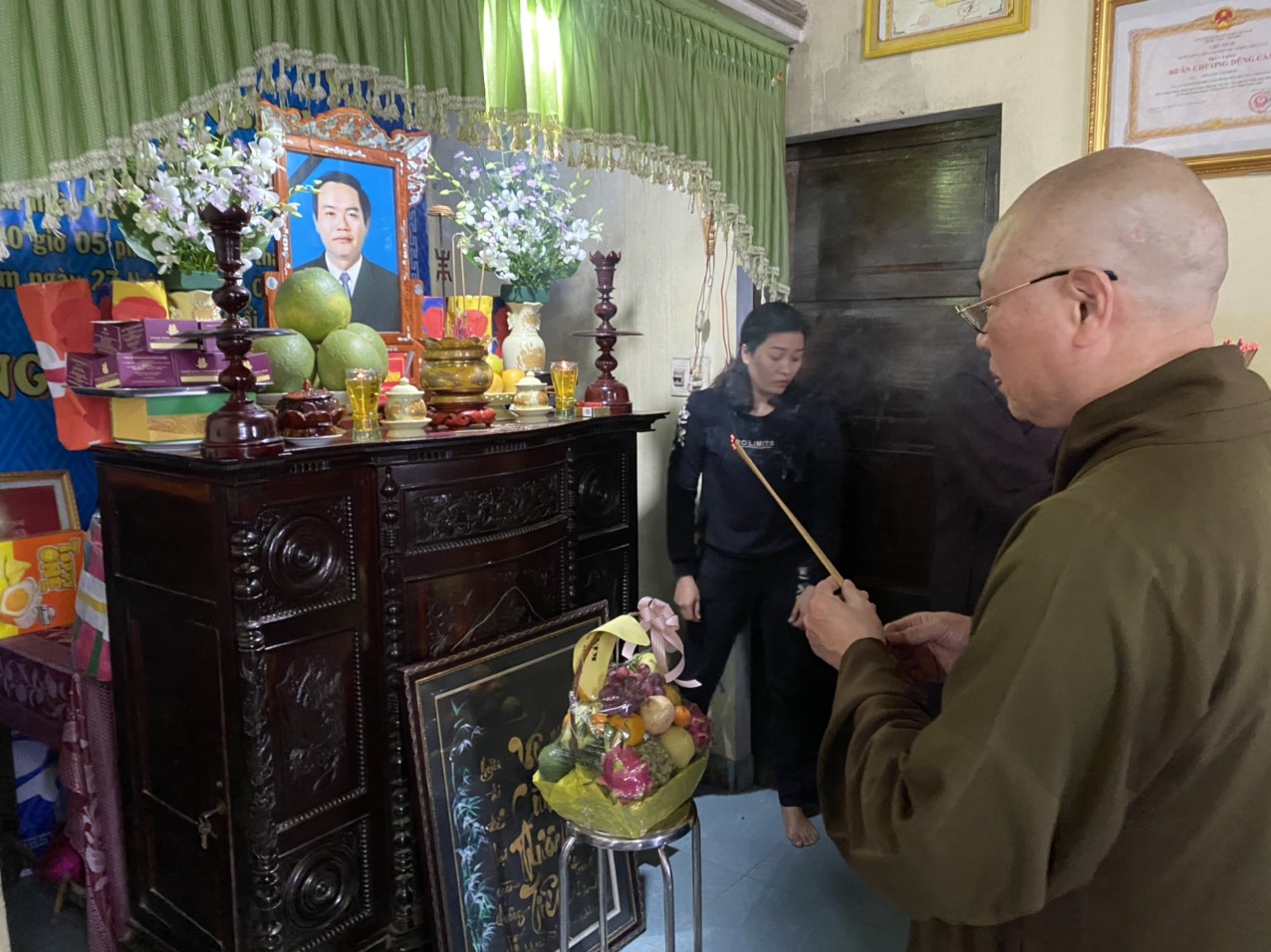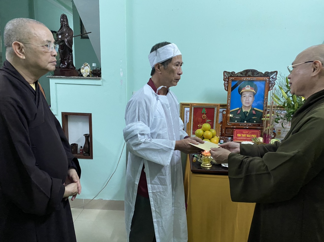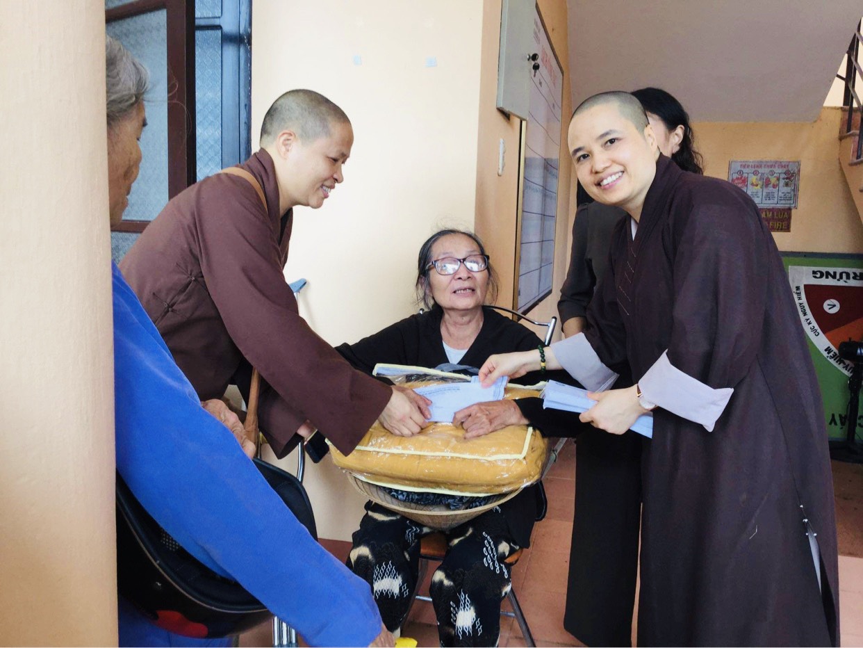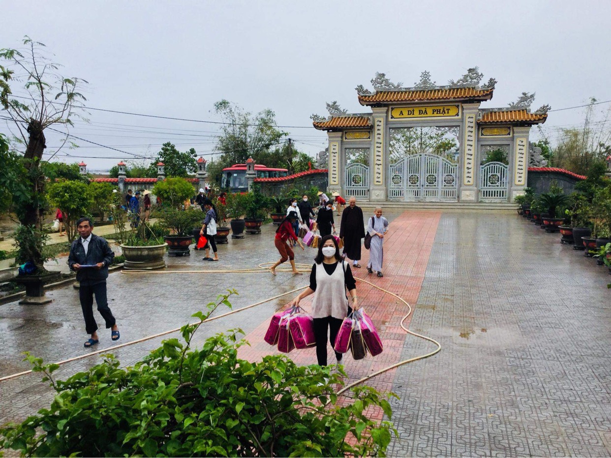 Ngày 16/11/2020 đoàn đã tới động viên, thăm hỏi và trao 250 phần quà cho 250 hộ gia đình có hoàn cảnh khó khăn bị thiệt hại do lũ lụt, sạt lở đất thuộc xã Quảng Vinh, huyện Quảng Điền, tỉnh Thừa Thiên Huế, mỗi phần quà bao gồm 1 phong bì tiền mặt 1 triệu đồng và 1 chiếc chăn ấm. Chiều cùng ngày, đoàn tới động viên, thăm hỏi, chia sẻ khó khăn, mất mát với thân nhân của một số gia đình chiến sỹ đã anh dũng hy sinh trong đợt cứu hộ, cứu nạn do sạt lở núi tại tiểu khu 67 và thuỷ điện Rào Trăng 3. Đồng thời, chư tôn đức đã làm lễ dâng hương, tưởng niệm và tụng kinh cầu nguyện hương linh các anh hùng, liệt sỹ sớm được siêu thoát.