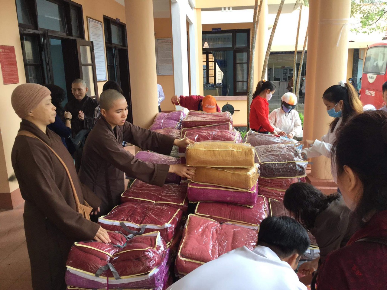 Trong 2 ngày 16 và 17/11/2020 ( nhằm ngày 2 và 3/10 Canh Tý), HT. Thích Thanh Giác – Phó trưởng Ban thường trực ban Hoằng pháp TƯ GHPGVN, phó trưởng Ban thường trực BTS GHPGVN thành phố Hải Phòng, trưởng đoàn từ thiện; SC. Thích Hạnh Như – Trụ trì chùa Linh Ứng, H. Kiến Thuỵ, thành phố Hải Phòng, SC. Thích Diệu Phụng, chư tôn đức Tăng Ni trụ trì một số chùa trên địa bàn thành phố, cùng đại diện thành viên CLB Hoa Sen ( Chùa Linh Ứng), Phật tử chùa Long Hoa, chùa Phổ Chiếu, CLB Hải Phòng Học và các nhà hảo tâm, các mạnh thường quân đã trao 500 phần quà cho bà con bị thiệt hại do bão lũ tại tỉnh Thừa Thiên Huế.