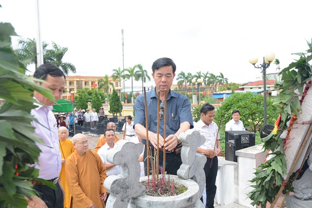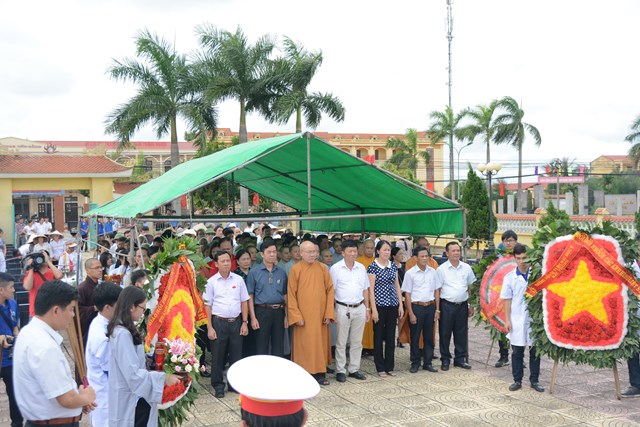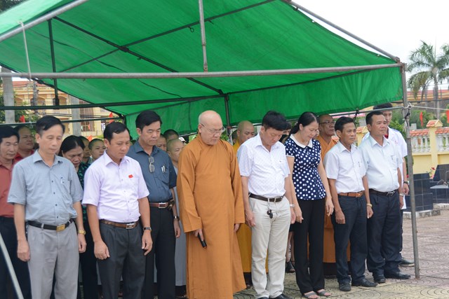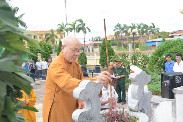 Trước khi chính thức bước vào buổi lễ Tri ân các anh hùng liệt sỹ ngân ngày 27/07, Chư tôn đức Tăng Ni BTS GHPGVN thành phố Hải Phòng, cùng các cấp chính quyền địa phương đã tổ chức đặt vòng hoa, dâng hương tưởng niệm và lễ cầu siêu các anh hùng liệt sỹ tại Đài tưởng niệm các anh hùng liệt sỹ thuộc xã Hữu Bằng, huyện Kiến Thụy, thành phố Hải Phòng