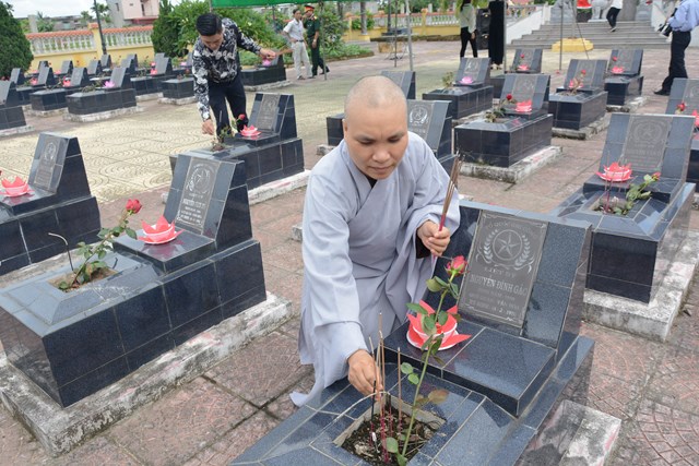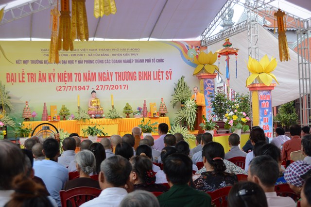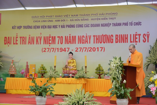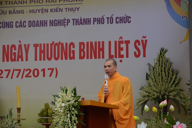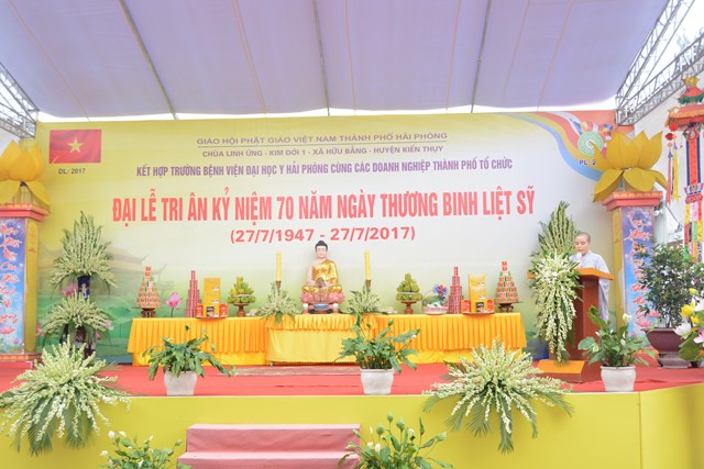 Nhân dịp này, Hòa thượng Thích Quảng Tùng – Phó chủ tịch HĐTS TƯ GHPGVN, trưởng Ban từ thiện – xã hội GHPGVN, trưởng BTS GHPGVN thành phố Hải Phòng đã ban đạo từ ôn lại truyền thống yêu nước của Dân tộc Việt Nam và nói lên công ơn của các anh hùng liệt sỹ đã anh dũng hy sinh cho Độc lập tự do của Đất nước. Dù chúng ta có làm gì đi chăng nữa thì cũng không thể nào đền đáp được công lao to lớn của các anh. Đồng thời, Hòa thượng cũng tán thán công đức của Sư thầy trụ trì chùa Linh Ứng đã làm tốt các công tác Phật sự trong những năm vừa qua, đặc biệt là các hoạt động từ thiện, nhân đạo, thực hiện theo đúng phương châm mà mà GHPGVN đã đề ra: “ Phật giáo luôn đồng hành cùng Dân tộc”.