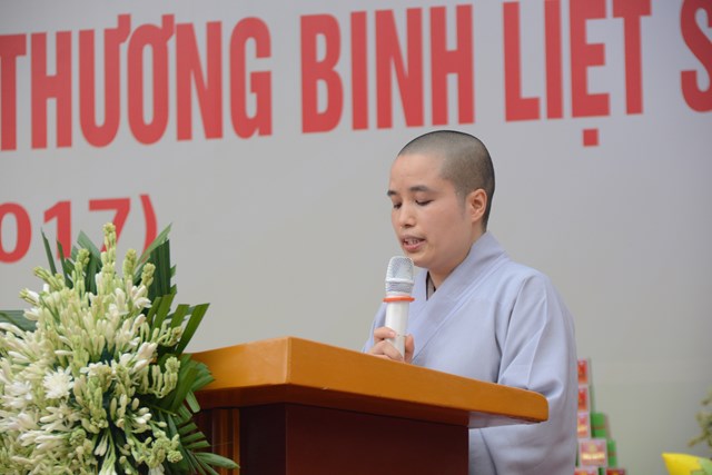 Sau khi đặt vòng hoa tại tại Đài tưởng niệm các anh hùng liệt sỹ, Chư tôn thiền đức tăng ni và quý vị đại biểu đã vân tập về phía trước chính điện chùa Linh Ứng để cử hành buổi lễ Tri ân các anh hùng liệt sỹ nhân kỷ niệm 70 năm ngày thương binh liệt sỹ ( 27/07/1947 – 27/07/2017). Trên tinh thần tri ân, báo ân của Nhà Phật, cũng như đạo lý “ Uống nước nhớ nguồn” từ ngàn đời nay của Dân tộc Việt Nam, thay mặt cho BTC, Sư thầy Thích Hạnh Như – Trụ trì chùa Linh Ứng, trưởng BTC đại lễ đã lên phát biểu khai mạc chương trình. Trong bài phát biểu khai mạc buổi lễ có đoạn viết: “ Thế hệ hôm nay nói chung và Tăng Ni, phật tử chùa Linh Ứng nói riêng mãi mãi nhớ ơn những anh linh anh hùng liệt sỹ đã hy sinh cho sự nghiệp thống nhất Đất nước. Giờ đây, trong ý nghĩa duyên khởi của Pháp giới, âm có siêu thì dương mới thới; và tinh thần tri ân, báo ân của Đạo Phật, uống nước nhớ nguồn của Dân tộc Việt Nam, cũng là nét đẹp văn hóa truyền thống của Dân tộc và Phật giáo Việt Nam, chúng tôi tin tưởng rằng anh linh của những người đã mất sẽ vô cùng tự hào vì Tổ quốc mãi mãi ghi công và Nhân dân Việt Nam, trong đó có Tăng Ni, Phật tử chùa Linh Ứng luôn tưởng nhớ và báo ân bằng hành động cụ thể, lợi Đạo, ích đời, góp phần xây dựng xã hội công bằng, dân chủ, văn minh; Đồng cầu nguyện cho những người còn sống luôn được hạnh phúc, an lạc trong một xã hội chan chứa tình người, một Đất nước độc lập tự do.”.