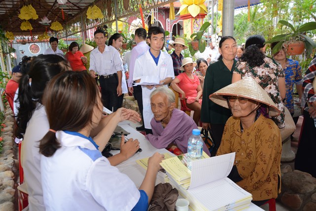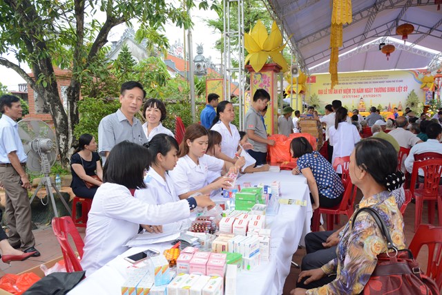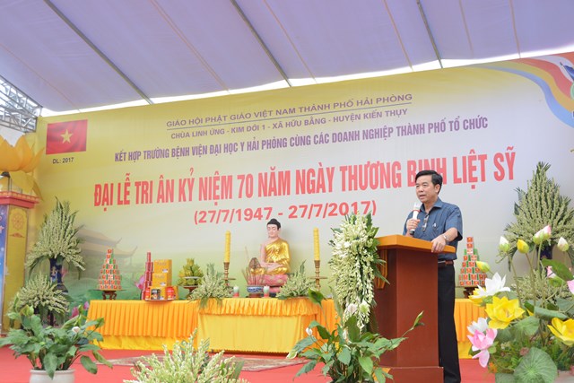 Phát biểu tại buổi lễ, Viện sĩ, GS. TS Phạm Văn Thức, thành ủy viên, bí thư Đảng ủy, Hiệu trưởng trường Đại học Y Dược Hải Phòng cho biết: Trong những năm qua, tập thể cán bộ, y bác sỹ đang công tác tại Bệnh viện Đại học Y Hải Phòng đã luôn chú trọng tới hoạt động đền ơn, đáp nghĩa trên địa bàn thành phố Hải Phòng. Đặc biệt là vào các ngày thương binh liệt sỹ hàng năm, Bệnh viện Đại Học Y Dược thành phố Hải Phòng thường tổ chức các hoạt động khám chữa bệnh, cấp phát thuốc miễn phí cho các gia đình chính sách, các gia đình có hoàn cảnh khó khăn trên khắp các quận huyện của thành phố Hải Phòng. Bên cạnh đó trong những năm vừa qua, Ban giám đốc Bệnh viện cũng đã phối hợp với một số chùa trên địa bàn thành phố để tổ chức các hoạt động từ thiện, nhân đạo này. Ông cũng mong muốn trong những năm tiếp theo đội ngũ y, Bác sỹ của BV Đại học Y Dược Hải Phòng sẽ tiếp tục được về các chùa để phục vụ bà con, nhân dân, Phật tử, giúp bà con có sức khỏe tốt để sống một cuộc sống an lạc, hạnh phúc, cống hiến nhiều hơn nữa cho Đạo Pháp, cho Dân tộc.