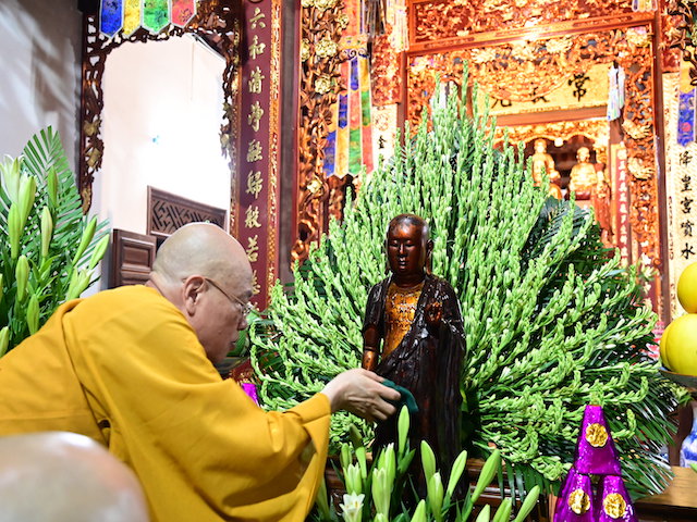 Hòa thượng Thích Thanh Giác cử hành nghi lễ Mộc dục