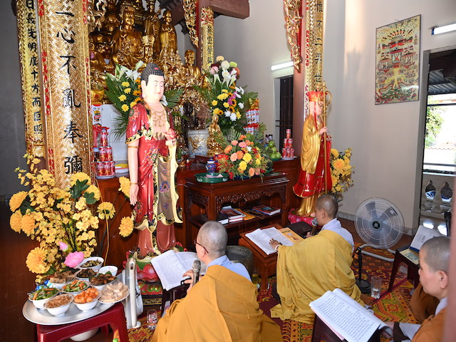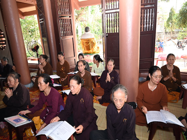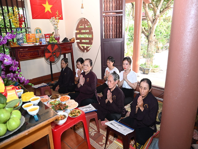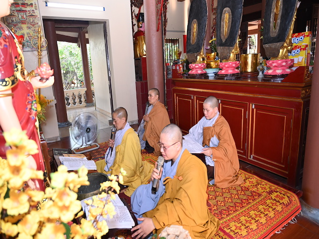Chư tôn đức Ni và Phật tử tụng kinh kính mừng Phật đản tại chính điện chùa Phúc Hưng