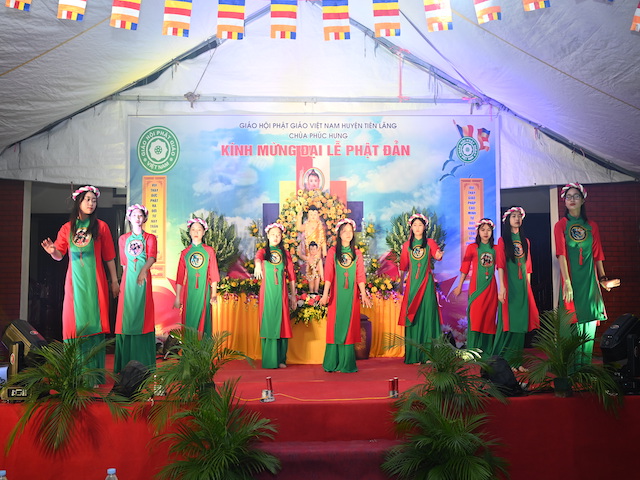 Mở đầu buổi lễ là một số tiết mục văn nghệ chào mừng do ca sỹ của Đoàn nghệ thuật Quân khu 3, các Phật tử đang sinh hoạt tại một số đạo tràng trên địa bàn huyện Tiên Lãng, Phật tử chùa Phúc Hưng, CLB thanh thiếu niên Phật tử chùa Phúc Hưng, CLB Dân vũ thôn Cẩm La trình bày để kính mừng đại lễ Phật đản PL. 2567 – DL. 2023.