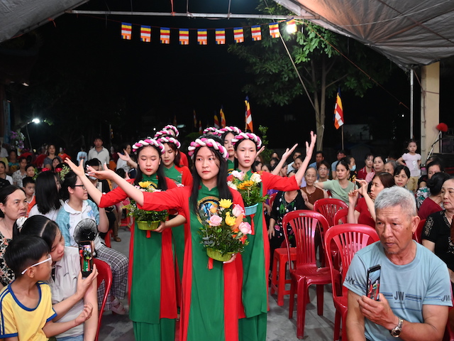 Thanh niên Phật tử chùa Phúc Hưng dâng hoa cúng dàng