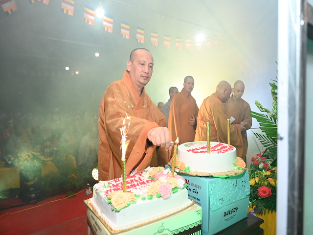 TT. Thích Quảng Minh cắt bánh kem kính mừng sinh nhật Phật