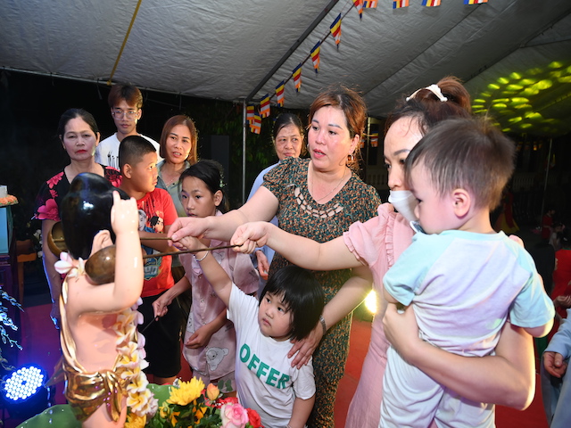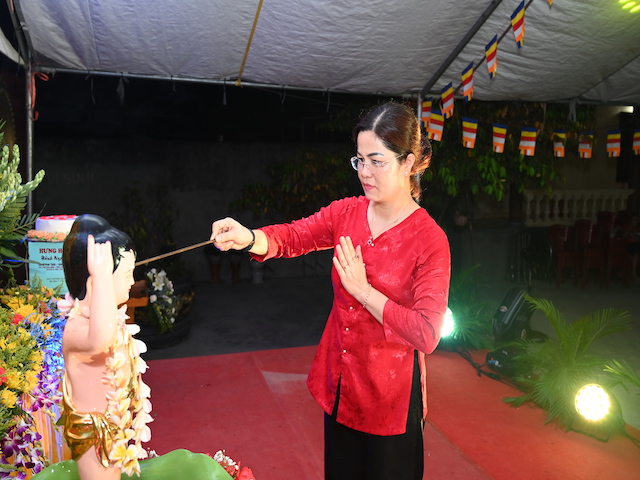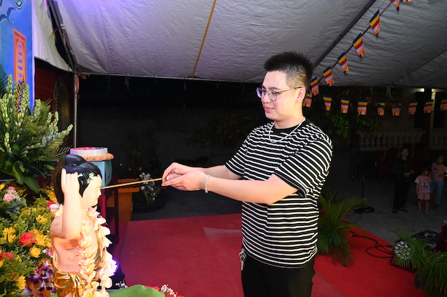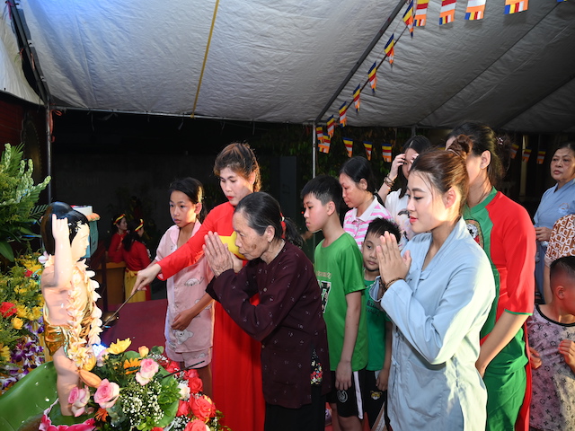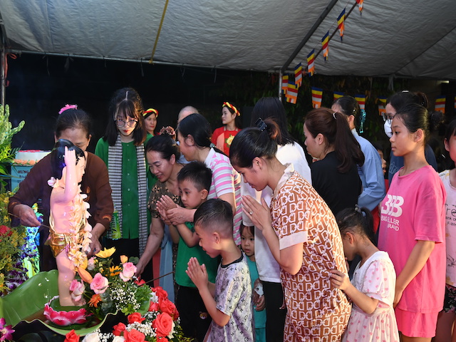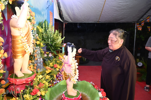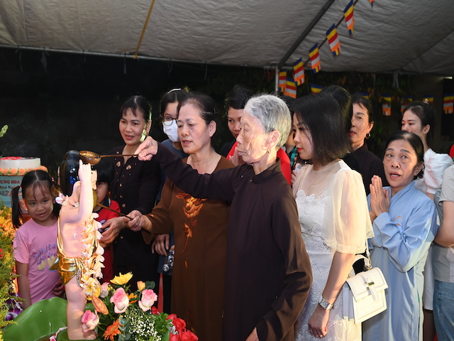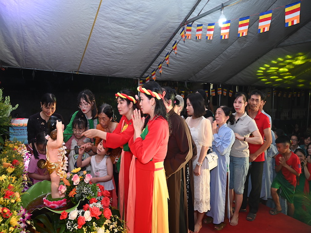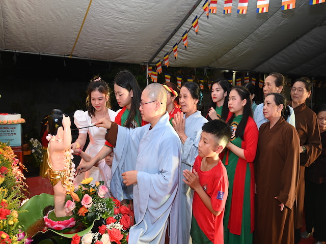 Trước khi kết thúc buổi lễ, chư tôn đức Tăng Ni chứng minh và toàn thể đại chúng là cử hành nghi lễ niêm hương, bạch Phật cầu nguyện thế giới hòa bình, chúng sinh an lạc và lễ Mộc dục ( tắm Phật) theo nghi thức truyền thống của Phật giáo trong niềm hoan hỷ vô biên đón mừng đấng Đại Giác Ngộ ra đời, sau này đã trở thành Đức Phật Thích Ca Mâu Ni mà hàng trời người đều phải quy ngưỡng.