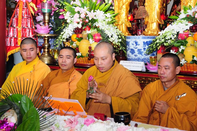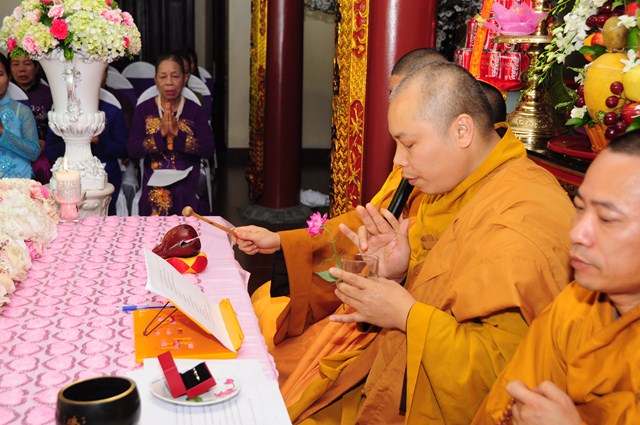Trước khi bắt đầu vào buổi lễ hằng thuận hai bên gia đình của đôi tân lang Nguyễn Minh Đức ( PD: Giác Đạo) và tân nương Đỗ Thị Thanh Hương ( PD: Diệu Hoa) đã dâng lời tác bạch thỉnh chư Tăng cử hành lễ hằng thuận cho các con của mình.