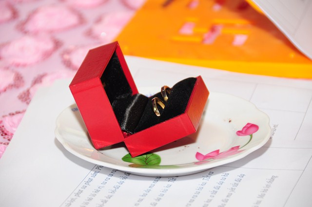 Trước khi Đại Đức Thích Giác Trung đưa đôi nhẫn cưới cho đôi bạn trẻ để đôi bạn tự trao nhẫn cưới cho nhau, Đại đức và chư Tăng đã làm lễ gia trì, chú nguyện vào đôi nhẫn. Đồng thời Đại đức đã giảng cho đôi bạn trẻ hiểu về ý nghĩa của chiếc nhẫn cũng như ý nghĩa của chữ “Nhẫn” đối với hạnh phúc gia đình. Nhẫn ở đây là sự nhẫn nhịn, vợ chồng phải biết nhường nhịn, nhẫn nhịn nhau, tôn trọng nhau; “Nhẫn” ở đây chính là sự tu dưỡng đạo đức và tu dưỡng phẩm hạnh. Một gia đình có êm ấm, hòa thuận được hay không, phần lớn là do sự nhẫn nhịn quyết định.