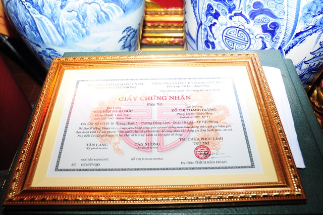 Trước khi buổi lễ hằng thuận kết thúc, hai bạn trẻ đã nhận Giấy chứng nhận lễ hằng thuận của chùa Phúc Linh và đối trước Tam Bảo, đối trước Chư Tăng dâng lên lời phát nguyện sẽ luôn yêu thương nhau, luôn tôn trọng nhau, luôn bảo vệ cho hạnh phúc của gia đình được trường tồn mãi mãi.