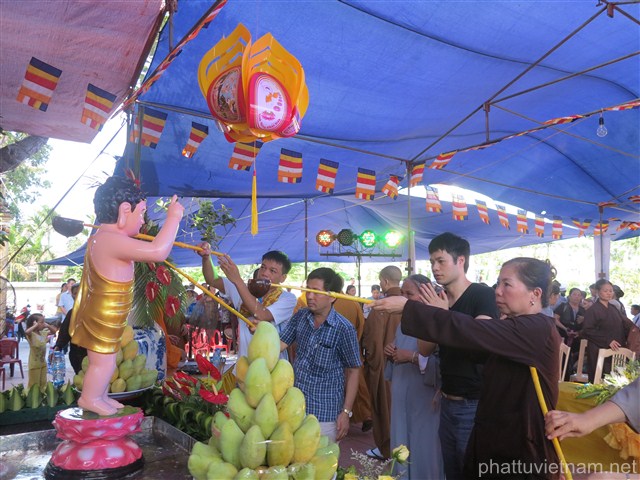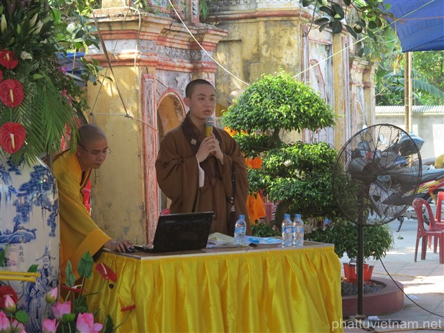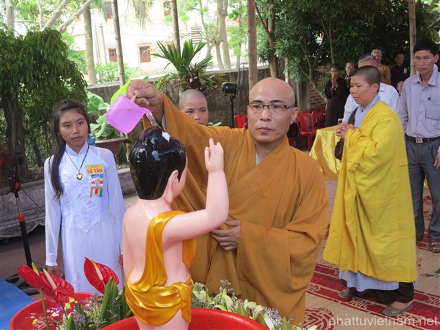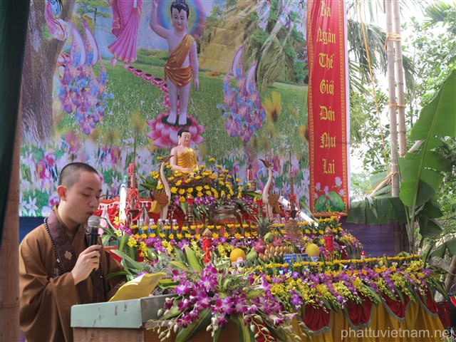 “Hơn 2500 đã qua, đức Phật xuất hiện nơi cõi Ta Bà, ban rải pháp nhiệm mầu giác ngộ, giải thoát cho mọi loài, ơn ấy nghĩa ấy nay thấm sâu trong lòng người con Phật. Hôm nay mùa Phật đản PL 2557- DL.2013 lại về, chúng ta hồi tưởng đến lịch sử thiêng liêng hào hùng của đức Thái tử Tất Đạt Đa, từ việc Ngài ra đời, đến việc tu học, quét sạch mọi ma quân, tiêu trừ nghiệp chướng, thành đạo vô thượng bồ đề và công hạnh giáo hóa chúng sanh của Ngài, thật là một áng văn trác tuyệt. Đề đáp ân đức ấy của Phật, không gì hơn bằng những việc làm thiết thực là tu tập, chuyển hóa vô minh phiền não, làm cho thân tâm ta mỗi ngày mỗi an lạc hơn. Chúng ta hãy cùng nhau xây dựng ngôi chùa làng mỗi ngày mỗi khang trang, xứng đáng là nơi duy trì mạng mạch văn hóa đạo đức tâm linh truyền thống Phật giáo ngàn đời của dân tộc…”, Thượng tọa ban đạo từ đến toàn thể hội chúng.