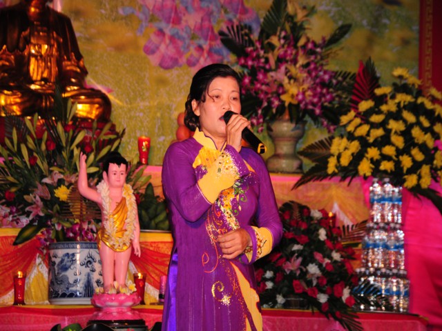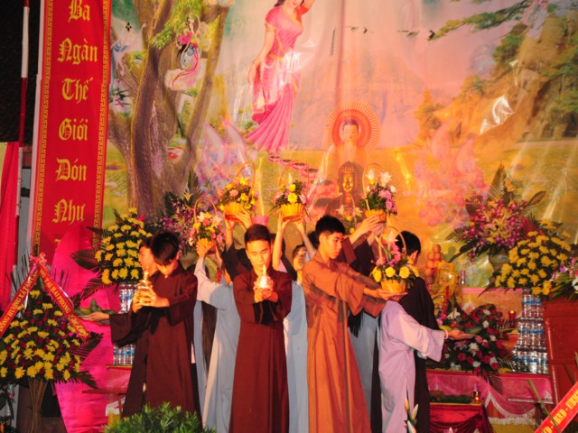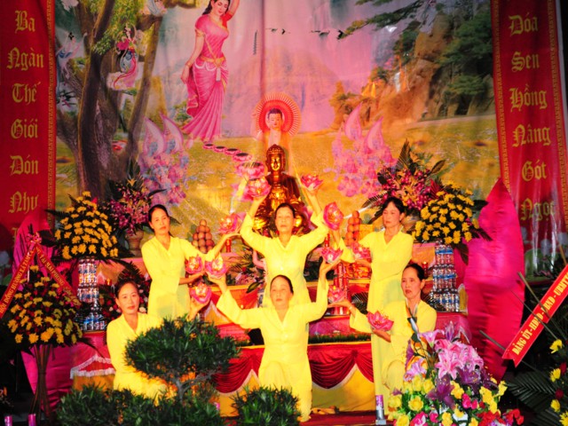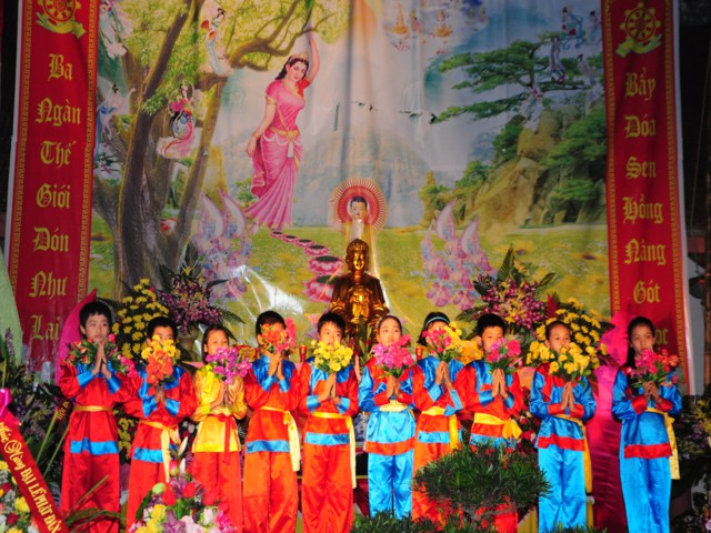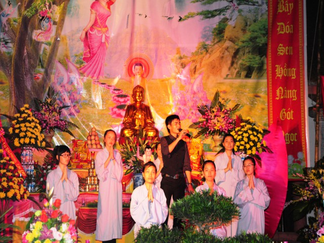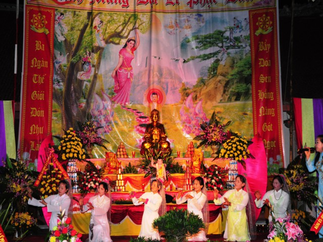 Trước khi buổi lễ được chính thức diễn ra là các tiết mục văn nghệ chào mừng do các Phật tử thuộc một số đạo tràng của huyện Vĩnh Bảo trình bày để cúng dàng lên mười phương Chư Phật nhân kỷ niệm 2638 năm ngày sinh của đức Bản sư Thích Ca Mâu Ni Phật.