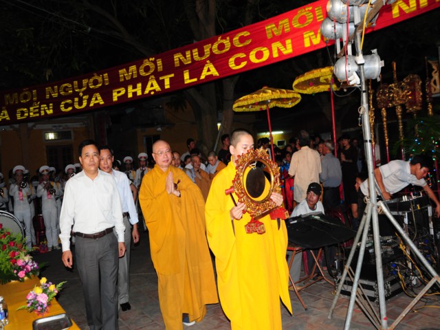 Được biết chiều cùng ngày, Chư tôn đức Tăng Ni BTS huyện Vĩnh Bảo cùng các Phật tử và nhân dân địa phương đã tổ chức lễ rước Phật quanh làng Thanh Sử, thôn Đông Am, xã Tam Cường, huyện Vĩnh Bảo.