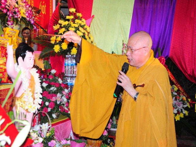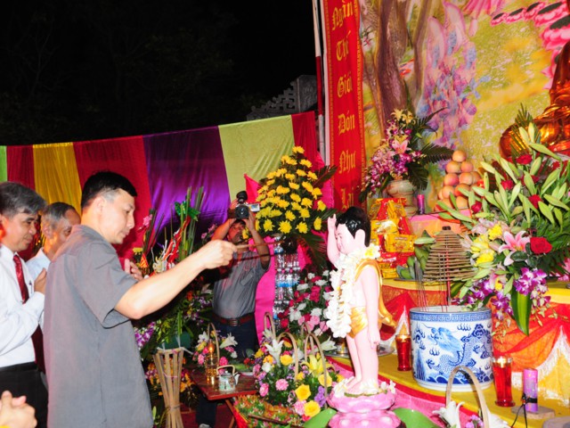 Trước khi kết thúc buổi lễ, Chư tôn đức Tăng Ni, các cấp chính quyền của thành phố, huyện Kiến Thụy và đông đảo các Phật tử đã cử hành nghi lễ niêm hương, bạch Phật cầu Quốc thái dân an và lễ tắm Phật theo nghi thức Phật giáo.