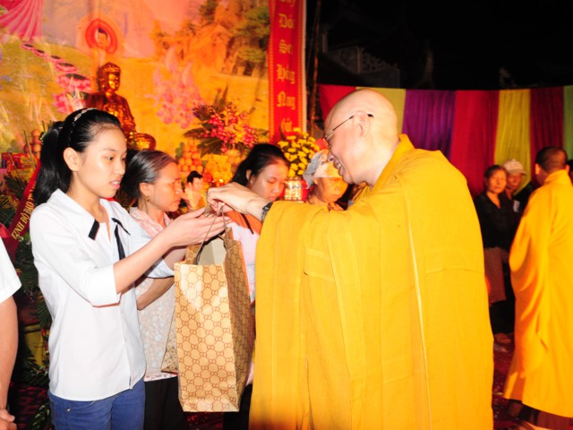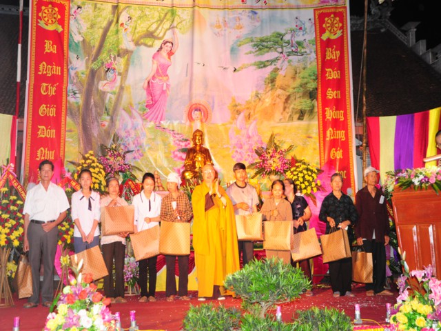 Nhân dịp này, thay mặt cho BTS GHPGVN huyện Vĩnh Bảo, TT. Thích Thanh Giác đã trao 11 suất quà cho các gia đình có hoàn cảnh khó khăn, người già neo đơn, các thương bệnh binh, người tàn tật, trẻ em mồ côi, trẻ em nghèo thuộc 11 thôn của xã Tam Cường, huyện Vĩnh Bảo.