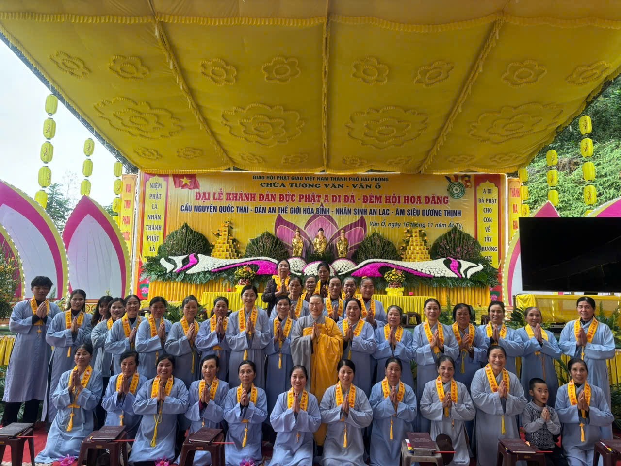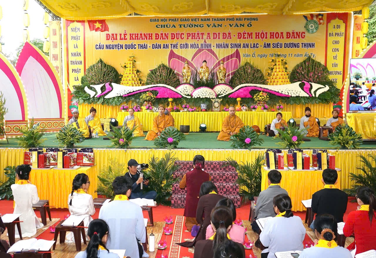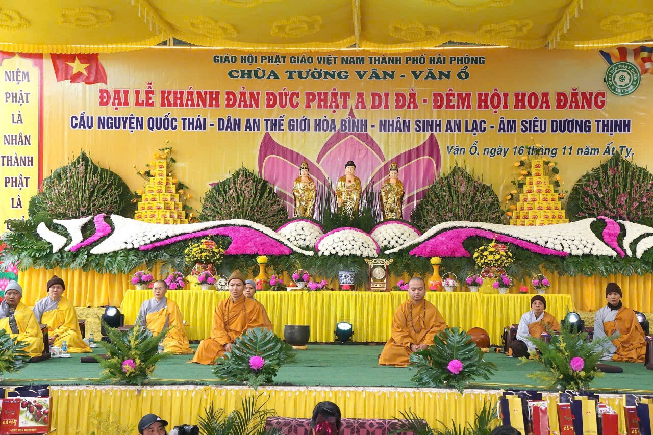 Chiều và tối ngày 04/01/2026 (nhằm ngày 16/11 năm Ất Tỵ), tại. chùa Tường Vân (Chùa Văn Ổ), tổ dân phố Văn Ổ, phường Phạm Sư Mạnh, thành phố Hải Phòng đã trang nghiêm thành kính diễn ra Pháp hội niệm Phật và Đêm hoa đăng kính mừng khánh đản Đức Phật A Di Đà PL. 2570 – DL.2026, cầu nguyện quốc thái dân an, thế giới hoà bình, nhân sinh an lạc, âm siêu dương thịnh.