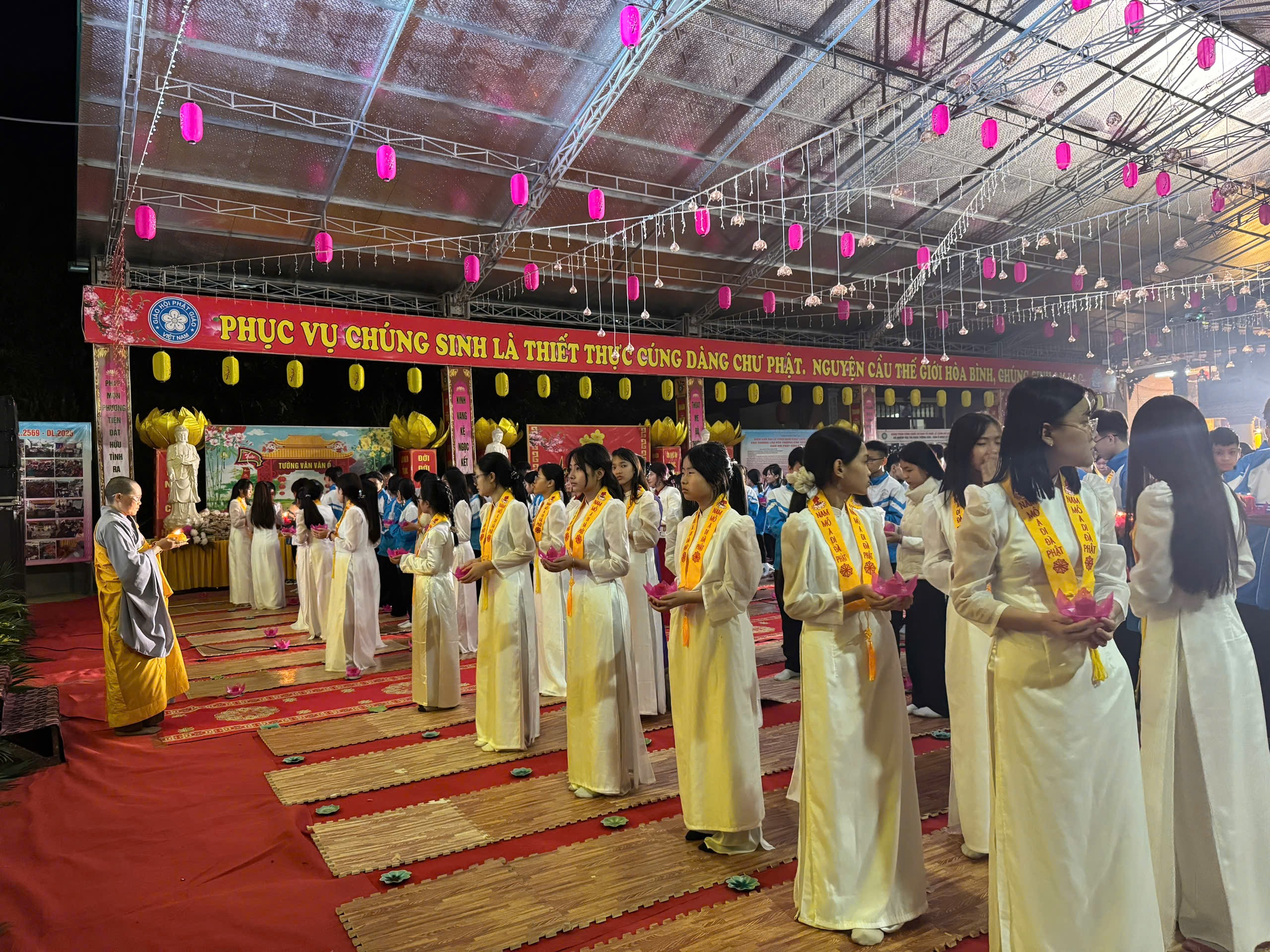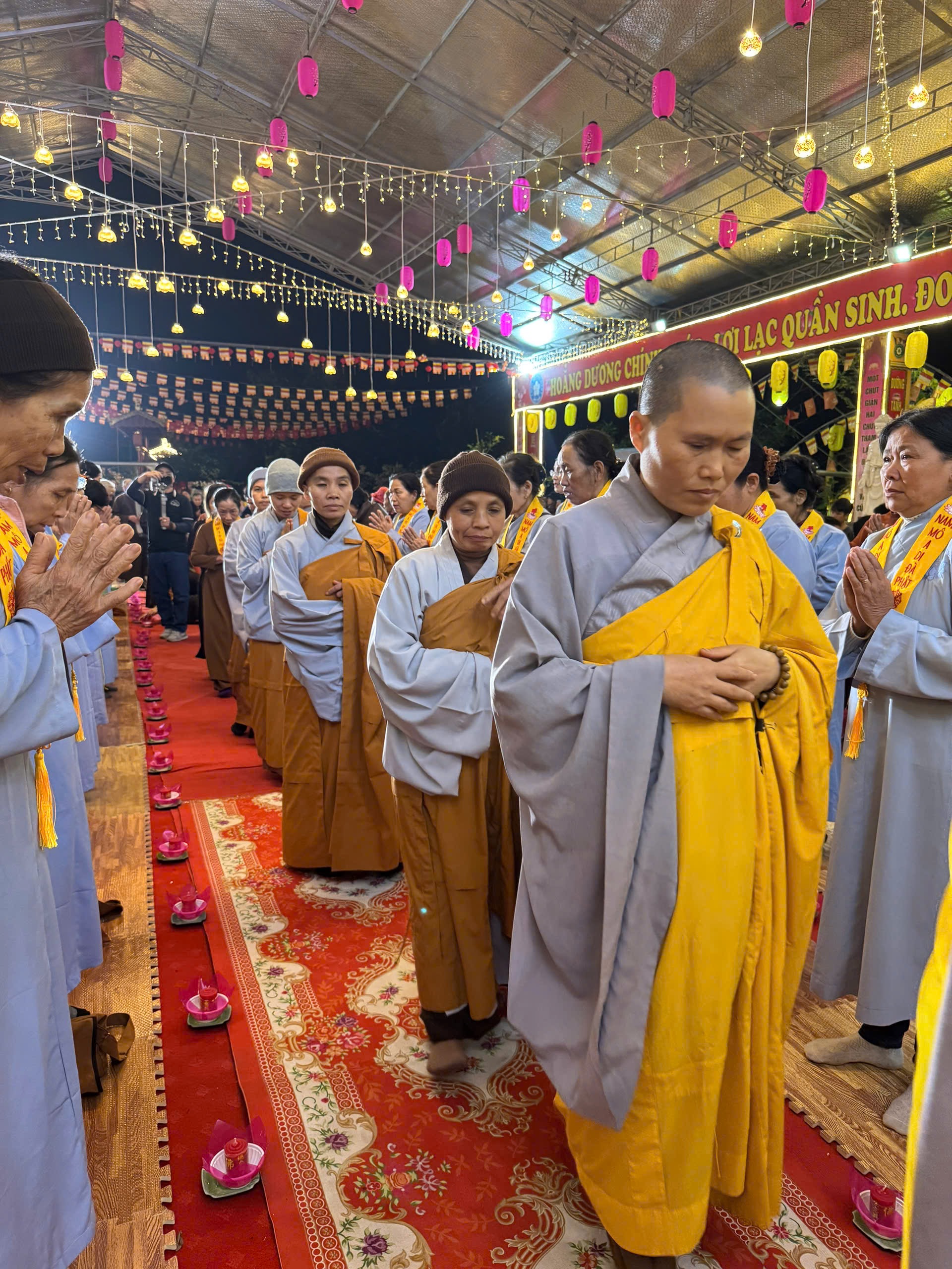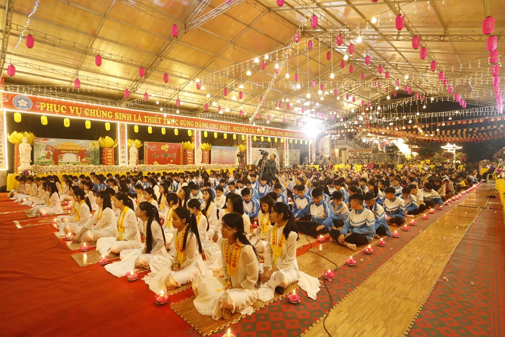 Những ngọn nến lung linh, huyền ảo đã xua tan màn đêm vô minh, si ám của cuộc đời, soi rọi khắp nhân gian để con người trở về với Chân – Thiện – Mỹ, trở về với Phật tính vốn có của mình mà lâu nay đã bị vô minh che lấp. Đêm hoa đăng dần khép lại với nghi thức dâng đăng cầu nguyện, mang theo đó là niềm tin, là những ước vọng về một tương lai tươi sáng, về một thế giới không còn chiến tranh, không còn khổ đau, người người, nhà nhà được ấm no, hạnh phúc, được ánh sáng của Phật Pháp soi rọi. Đêm hoa đăng kính mừng Khánh đản đức Từ phụ A Di Đà PL. 2570 – DL. 2026 khép lại trong không khí hoan hỷ, ấm tình đạo vị, hứa hẹn một mùa xuân mới tươi đẹp đang gần kề.