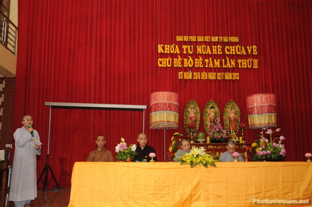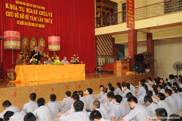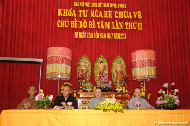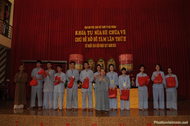 Quang lâm và chứng minh cho buổi lễ bế mạc có sự hiện diện của Ni Sư Thích Tâm Chính, Phó thư ký ban từ thiện – xã hội TW GHPGVN, Ủy viên thường trực kiêm Trưởng Ban từ thiện xã hội GHPGVN TP. Hải Phòng; Trưởng BTS GHPGVN quận Hải An, Trưởng BTC khóa tu mùa hè lần thứ 3; ĐĐ. Thích Tuệ Minh – Chủ nhiệm khóa tu, ĐĐ. Thích Pháp Như; SC. Thích Nữ Huệ Nghiêm, cùng đông đảo chư tôn đức Ni trong chốn trụ xứ chùa Vẽ và gần 400 em khóa sinh tham dự khóa tu mùa hè chủ đề “ Bồ đề tâm’ lần thứ 3.