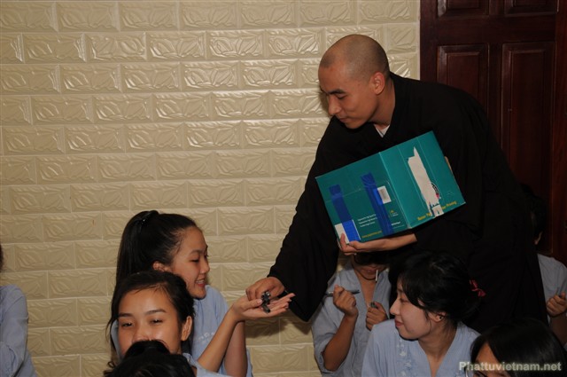 Trước khi dời ngôi chùa Vẽ thân yêu mà các em đã gắn bó trong suốt 1 tuần tu học, các em đã được nhận những món quà ý nghĩa từ chính tay Ni sư trụ trì và Ban tổ chức khóa tu