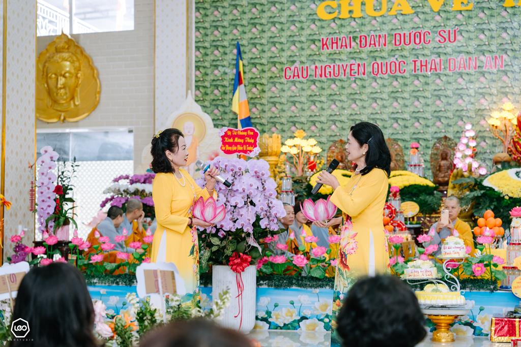 Trước khi chính thức tổ chức khai đàn Dược Sư, Ni trưởng trụ trì đã bố thí cho quý Phật tử một thời Pháp ngắn về ý nghĩa của Đàn Dược Sư thất châu, cầu nguyện Quốc thái dân an nhân dịp đầu xuân. Theo đó, tổ chức khai đàn dược sư ngoài ý nghĩa cầu nguyện Quốc thái dân an, chúng sinh an lạc, còn có ý nghĩa là để báo hiếu ông bà, cha mẹ, nhờ oai lực của Tam Bảo, của chư Tăng, nhờ vào sự gia hộ của Đức Phật Dược Sư cầu nguyện cho ông bà cha mẹ hiện tiền được tăng long phúc thọ, ông bà cha mẹ đã quá vãng được siêu sinh về miền tịnh cảnh.