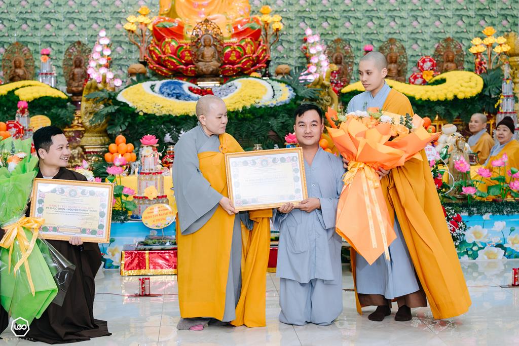 Ni trưởng Thích Tâm Chính trao bằng tuyên dương công đức của Ban từ thiện – xã hội GHPGVN cho các Phật tử