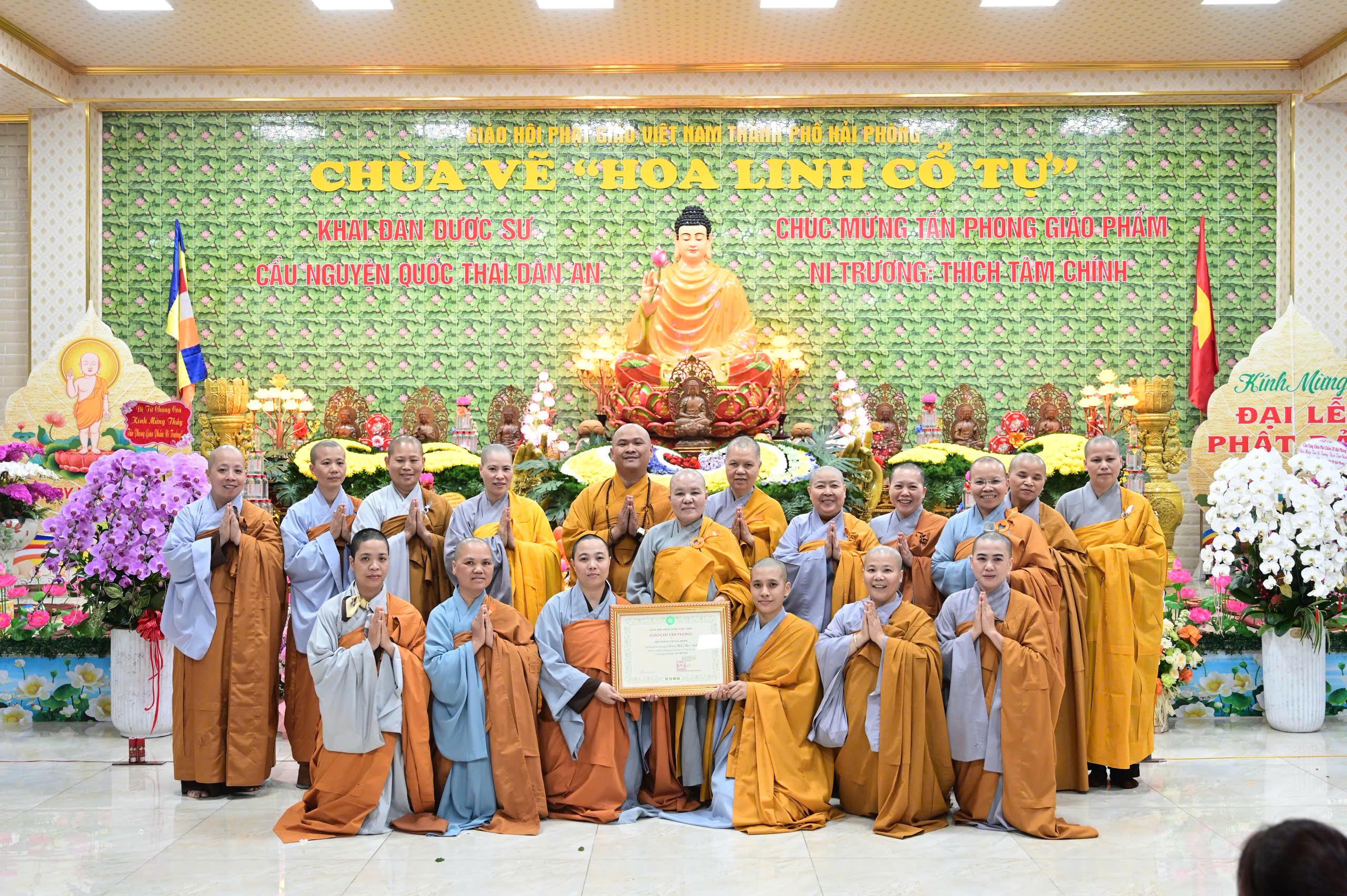 Theo thông lệ hàng năm, chiều ngày 16 tháng Giêng năm Bính Ngọ (nhằm ngày 04/03/2026), tại giảng đường Tổ đình chùa Vẽ (Hoa Linh cổ tự), số 26/443 phố Đà Nẵng, phường Đông Hải, thành phố Hải Phòng, đã long trọng diễn ra khóa lễ khai đàn Dược Sư thất châu cầu nguyện Quốc thái dân an nhân dịp đầu xuân Bính Ngọ – 2026.