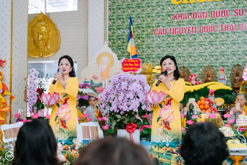 Trước khi chính thức tổ chức khai đàn Dược Sư, Ni trưởng trụ trì đã bố thí cho quý Phật tử một thời Pháp ngắn về ý nghĩa của Đàn Dược Sư thất châu, cầu nguyện Quốc thái dân an nhân dịp đầu xuân. Theo đó, tổ chức khai đàn dược sư ngoài ý nghĩa cầu nguyện Quốc thái dân an, chúng sinh an lạc, còn có ý nghĩa là để báo hiếu ông bà, cha mẹ, nhờ oai lực của Tam Bảo, của chư Tăng, nhờ vào sự gia hộ của Đức Phật Dược Sư cầu nguyện cho ông bà cha mẹ hiện tiền được tăng long phúc thọ, ông bà cha mẹ đã quá vãng được siêu sinh về miền tịnh cảnh.