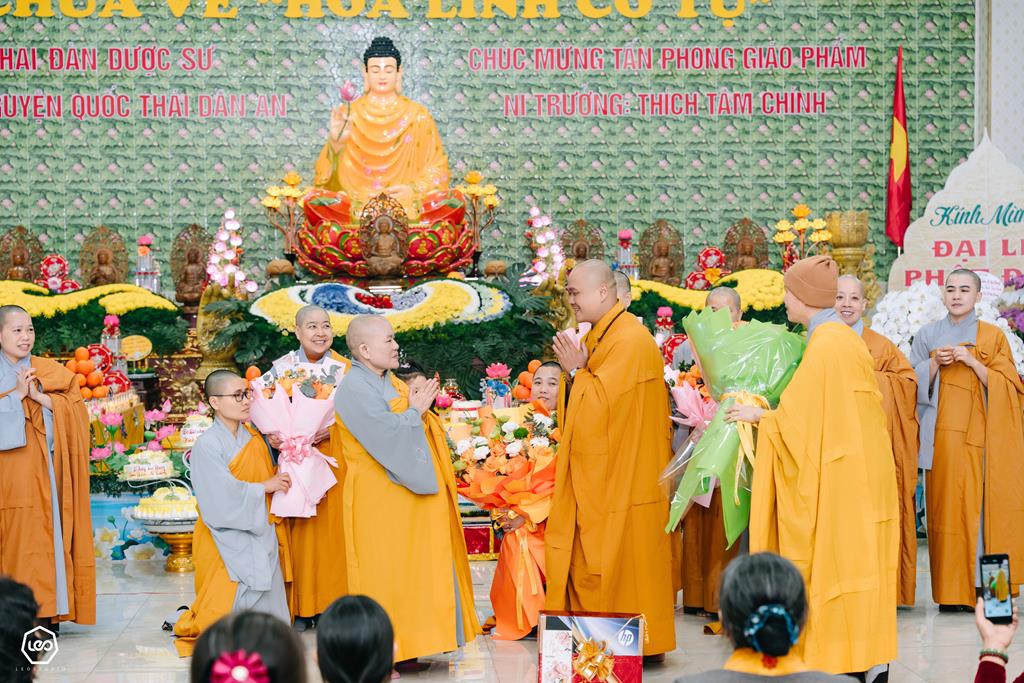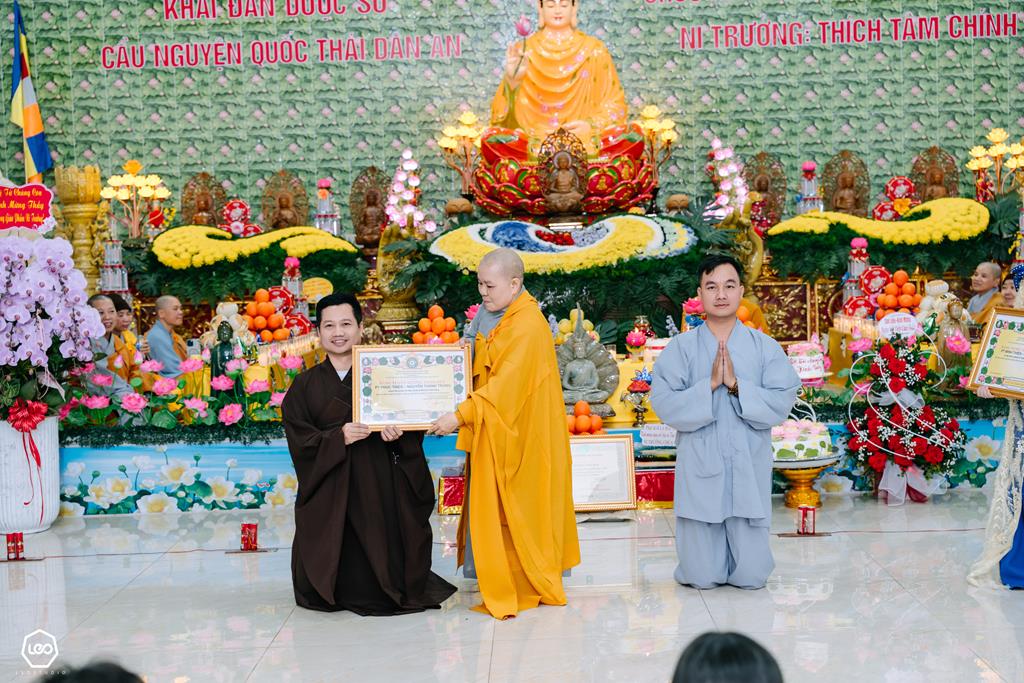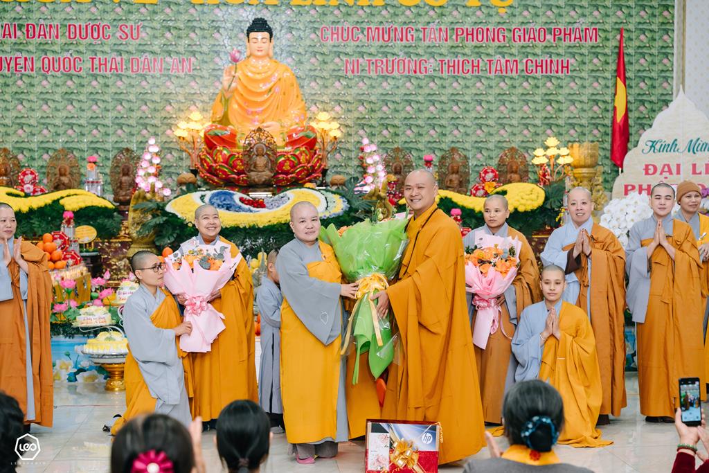 Nhân dịp, Ni sư Thích Tâm Chính vừa được Hội đồng chứng minh GHPGVN trao Quyết định tấn phong lên hàng giáo phẩm Ni trưởng, trong không khí hoan hỷ, ấm áp và thanh tịnh của buổi lễ, chư Tôn đức Ni trong chốn trụ xứ, chư Tôn đức Ni là đệ tử của Ni trưởng, chư Tôn đức Ni nhận y chỉ đã cùng quý Phật tử dâng lời tác bạch khánh tuế Ni trưởng, cũng là để chúc mừng Ni trưởng nhân ngày tiếp nối. Đồng thời, kính chúc Ni trưởng thân tâm thường an lạc, mãi là bóng cây đại thụ để hàng Phật tử noi theo trên bước đường tu nhân, học Phật và chúc Ni trưởng năm mới, tất cả các hoạt động Phật sự đều được viên thành.