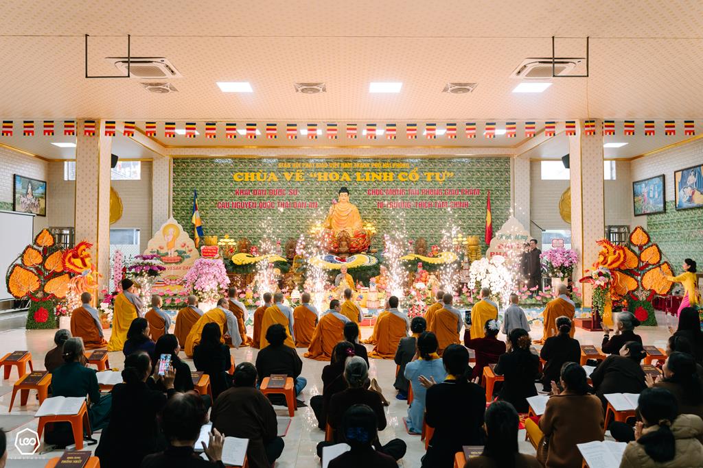 Theo thông lệ hàng năm, chiều ngày 16 tháng Giêng năm Bính Ngọ (nhằm ngày 04/03/2026), tại giảng đường Tổ đình chùa Vẽ (Hoa Linh cổ tự), số 26/443 phố Đà Nẵng, phường Đông Hải, thành phố Hải Phòng, đã long trọng diễn ra khóa lễ khai đàn Dược Sư thất châu cầu nguyện Quốc thái dân an nhân dịp đầu xuân Bính Ngọ – 2026.