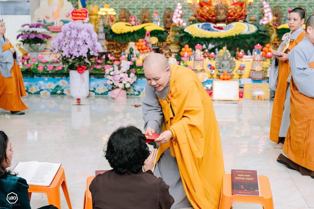 Ni trưởng lì xì cho các Phật tử nhân dịp đầu xuân
