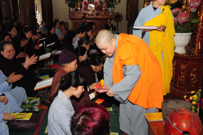 Nhân dịp đầu xuân năm mới, Ni Sư trụ trì Thích Tâm Chính cũng đã tặng lì xì cho tất cả các Phật tử có mặt trong buổi Khai kinh Dược Sư cầu an năm nay.