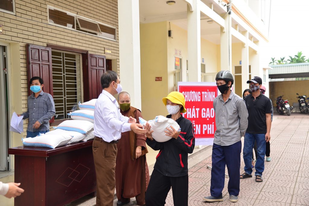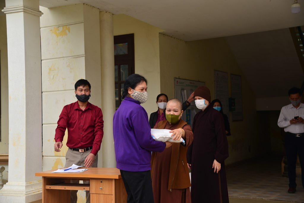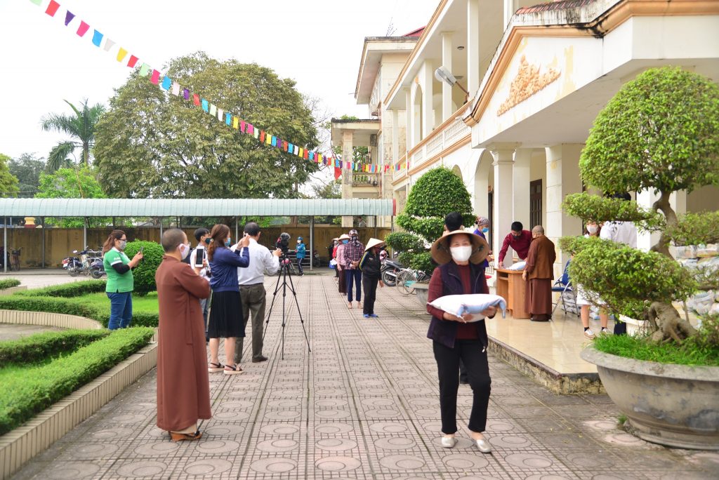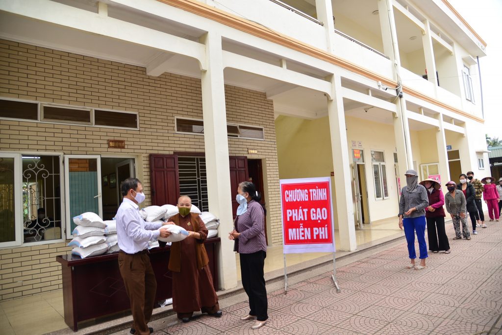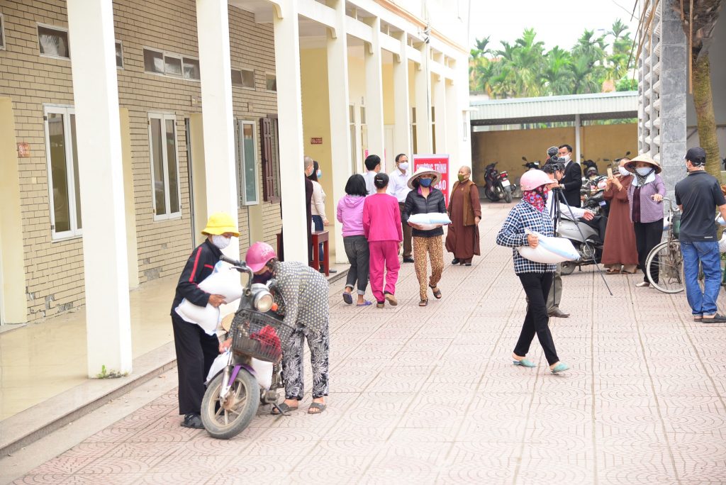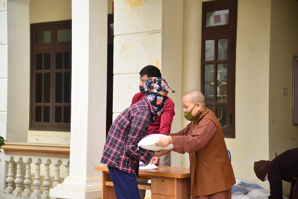 Tham gia buổi phát quà có sự hiện diện của đại diện lãnh đạo UB MTTQVN quận Hải An, các cấp uỷ Đảng thuộc HĐND, UBND, UB MTTQVN phường Đằng Hải, phường Nam Hải và phường Tràng Cát, quận Hải An. Tại buổi phát quà, mỗi hộ gia đình đã nhận 10kg gạo từ phía nhà chùa, cùng với lời động viên, thăm hỏi của Ni sư Thích Tâm Chính – Trưởng Ban từ thiện xã hội GHPGVN thành phố Hải Phòng, chúc bà con mạnh khoẻ, sớm vượt qua dịch bệnh để trở về với cuộc sống thường nhật. Đồng thời, Ni sư cũng nhắc nhở bà con chấp hành nghiêm chỉnh Chỉ thị số 16/CT-TTg của Thủ tướng Chính phủ và văn bản số 2244/UBND –VX ngày 27/03/2020 của UBND thành phố Hải Phòng về việc thực hiện đợt cao điểm phòng chống dịch Covid-19 tại thành phố: Hạn chế tối đa việc ra ngoài, không tập trung đông người, đeo khẩu trang khi ra ngoài, giữ khoảng cách tiếp xúc với người khác tối thiểu 2 mét, rửa tay thường xuyên bằng xà phòng hoặc dung dịch sát khuẩn, thực hiện khai báo y tế tự nguyện…để từ đó có biện pháp phòng tránh và bảo vệ bản thân cũng như gia đình một cách tốt nhất, góp phần chung tay cùng chính quyền địa phương đẩy lùi dịch bệnh Covid-19.